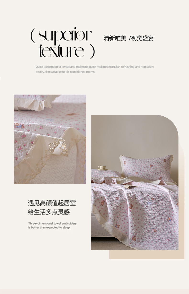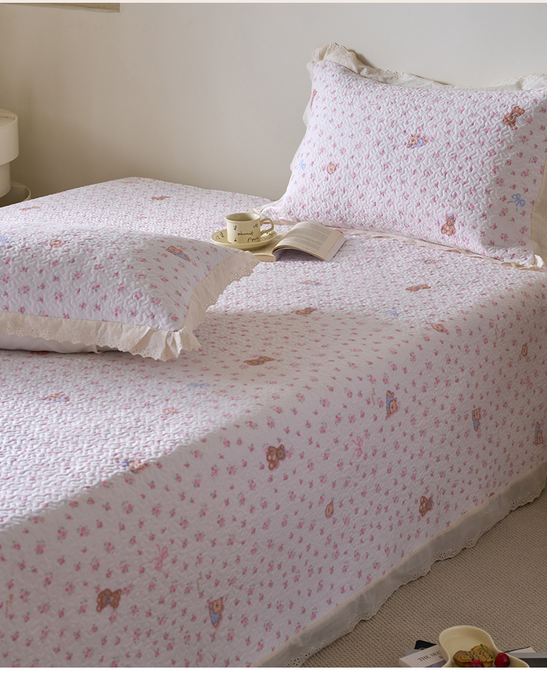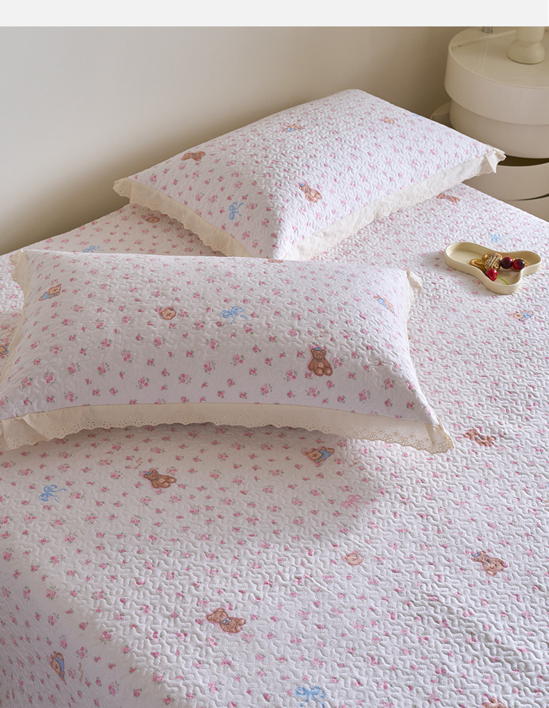 漫仙阁家纺 2025新款热卖法式花边款加厚床盖床盖三件套 小熊淘淘