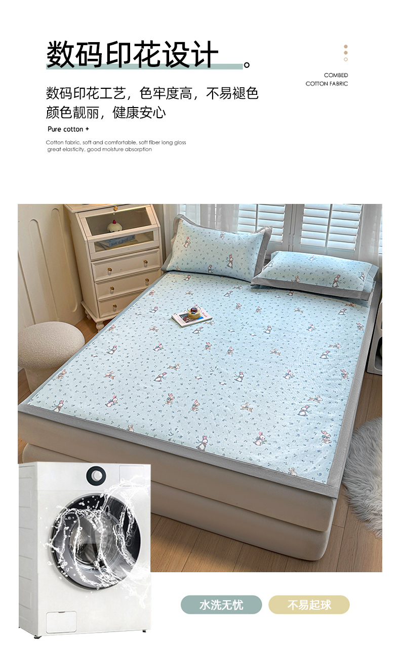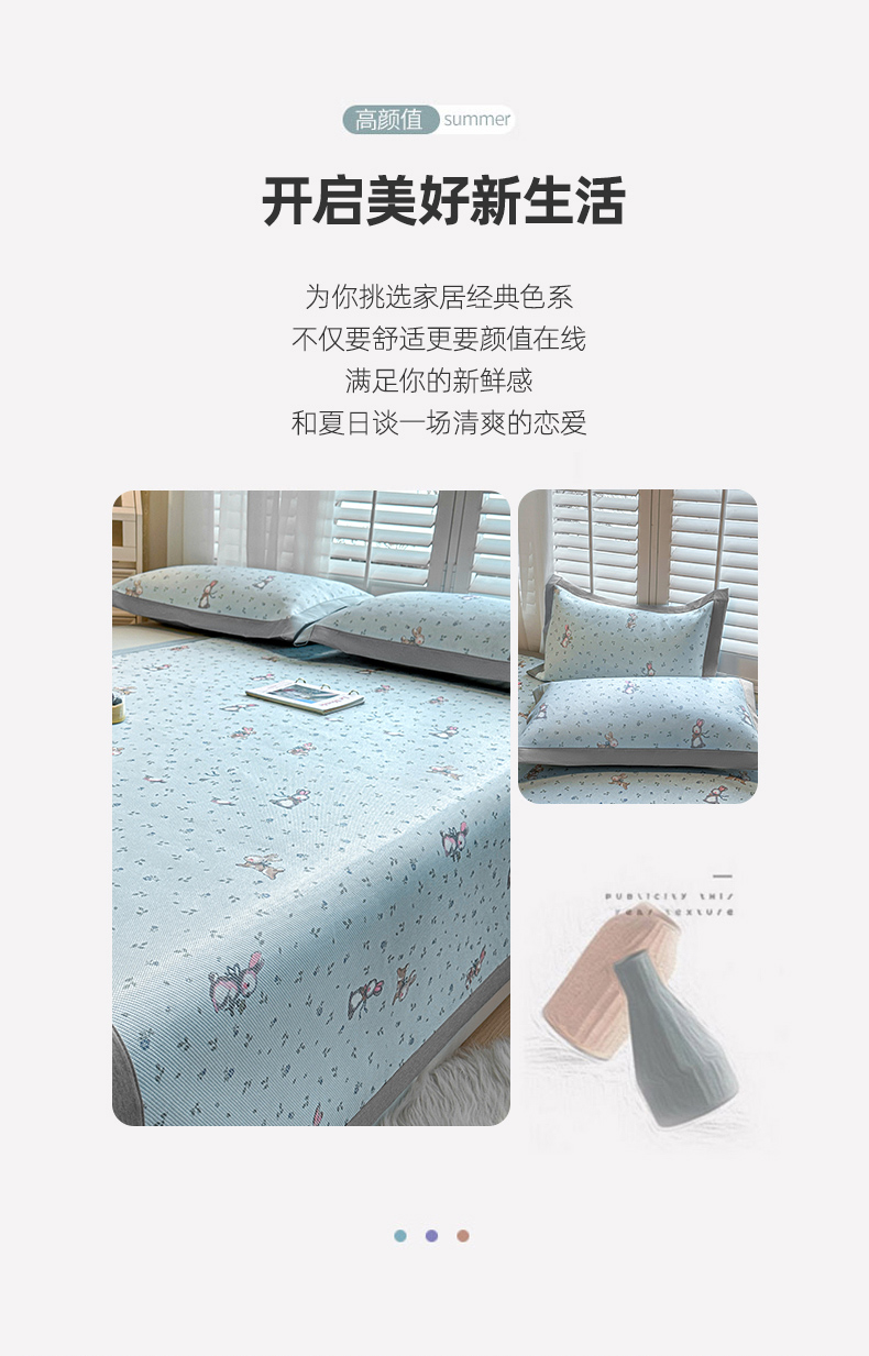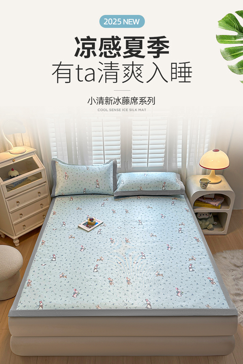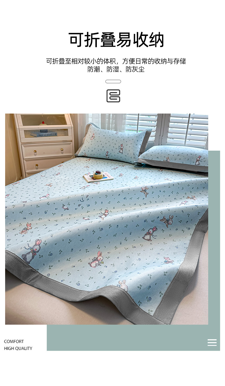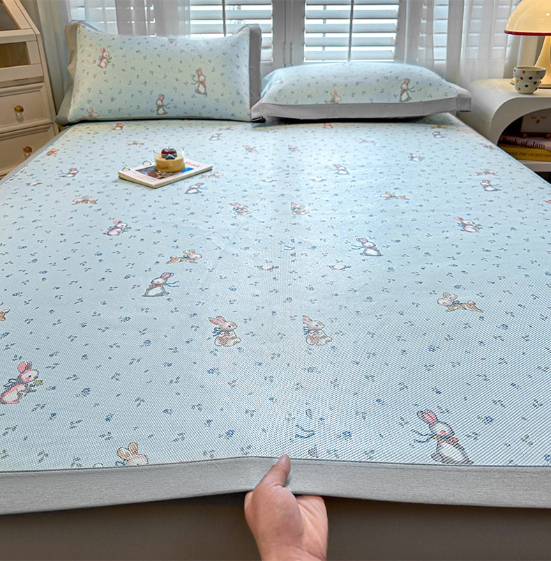 当前位置: 91家纺网 > 商品网购 > 床上用品 > 凉席 > 凉席套件 > 席佬大 2025新款高克重卡通数码印花冰藤席床席床笠款 森系小兔-平铺款