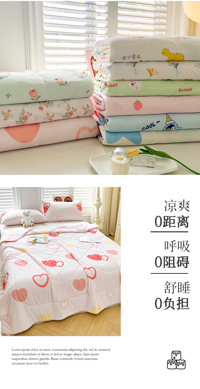 (总)好梦来家纺(原锦茂家纺) 2025年新款A类数码印花纯色夏凉被凉感丝数夏被冰淇淋夏被空调被西瓜被真丝天丝,爱心熊,百福,缤纷涂鸦,彩虹糖果,草莓甜心,草莓兔,晨曦 蓝,晨曦 奶白,橙意,春意,大耳狗,点点芬芳,搞怪女孩,好伙伴,黑白配,花园里,恐龙派对,酷企鹅,蓝格物语,汽车嘟嘟,趣味字母,时尚恐龙,甜蜜蜜,微夏,夏日玫瑰,小欣喜,星愿,叶脉,银杏叶,樱桃小熊,恐龙派对,秋叶诗韵,盛夏,太空人,叶叶相伴,竹竹熊,绿拼粉,紫拼粉,绿拼灰,蓝色,蓝拼灰,深蓝,粉色,粉拼灰
