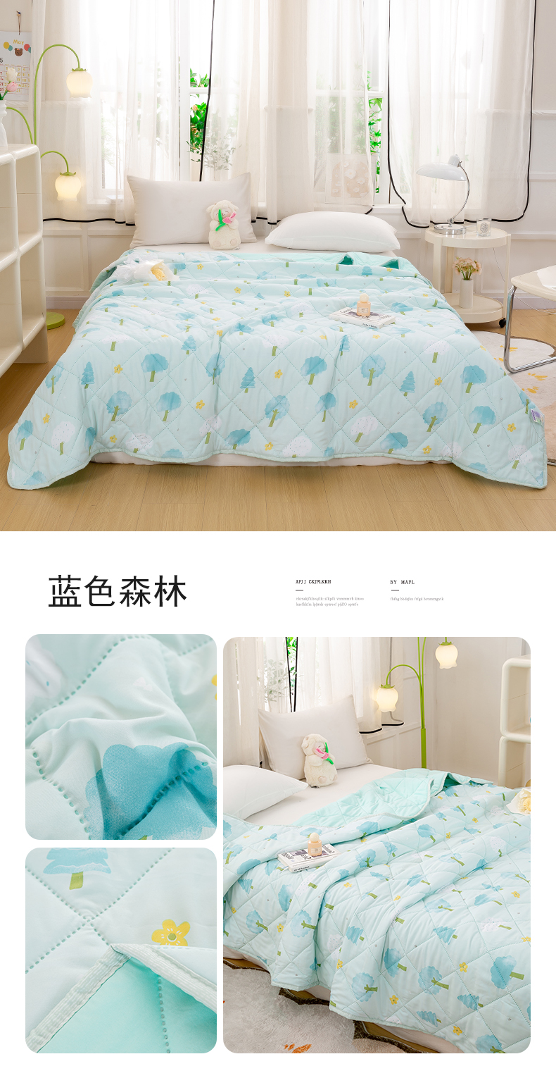 憨豆家纺 2025新款纳米印花超声波夏被简约可机洗空调被夏凉被礼品被直播跨境 蓝色森林
