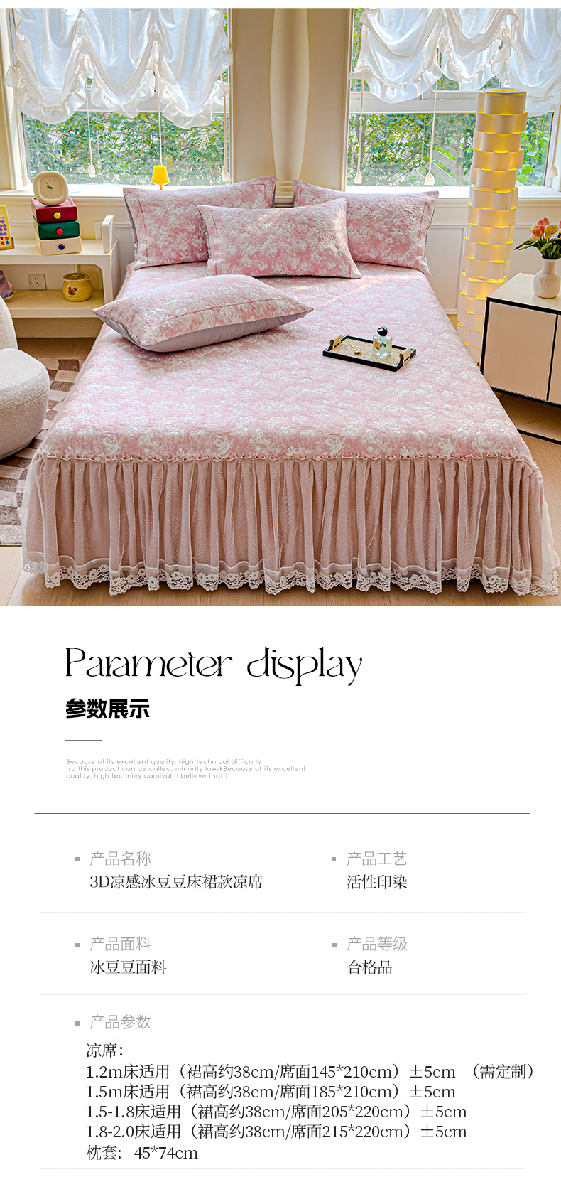 当前位置: 91家纺网 > 商品网购 > 床上用品 > 凉席 > 其他凉席 > 伊而梦蚊帐 2025新款A类3D立体冰豆豆双层蕾丝玫瑰床裙款凉席 双层蕾丝玫瑰-粉三件套