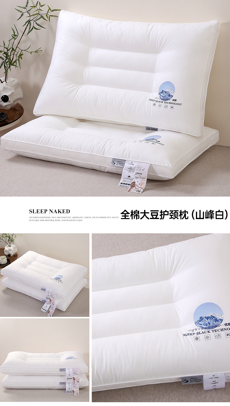 商品名称:赛格时代 2025A类全棉大豆枕-定型护颈枕(山峰白)