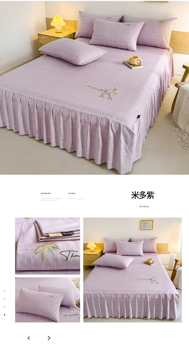 (总)布柔 2025新款加厚刺绣花边夹棉牛奶绒床裙款床笠,麦穗绿,麦穗湖蓝,麦穗灰,麦穗天蓝,麦穗粉