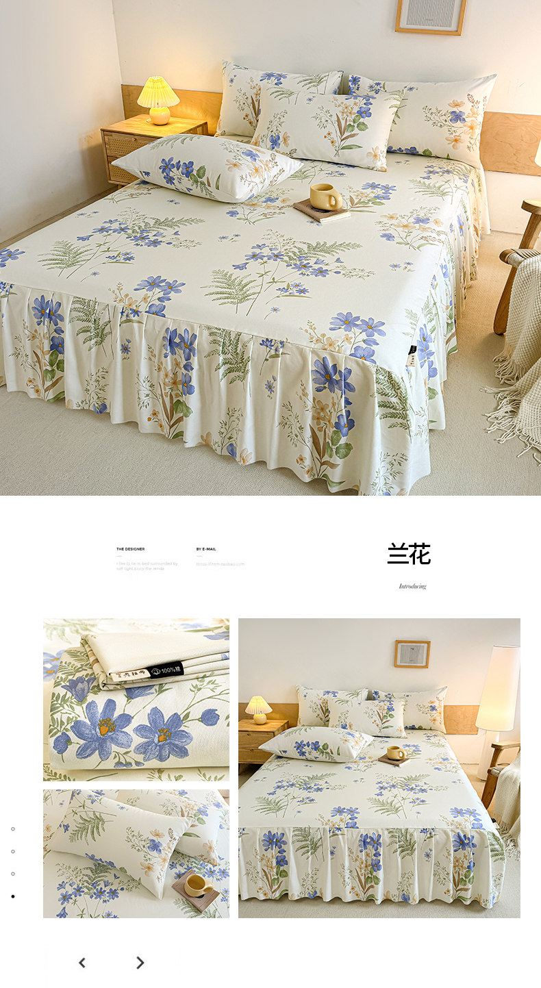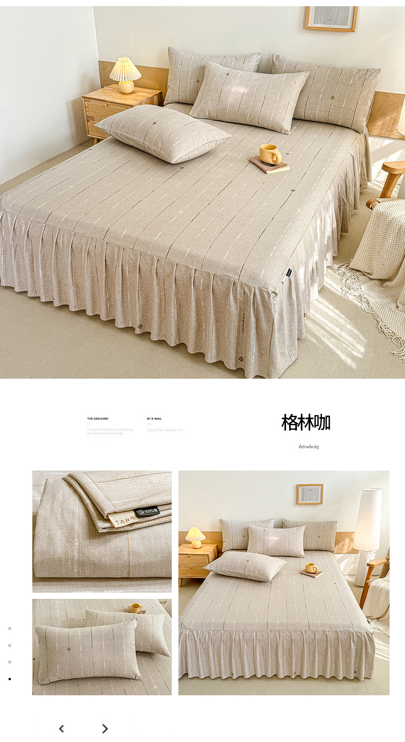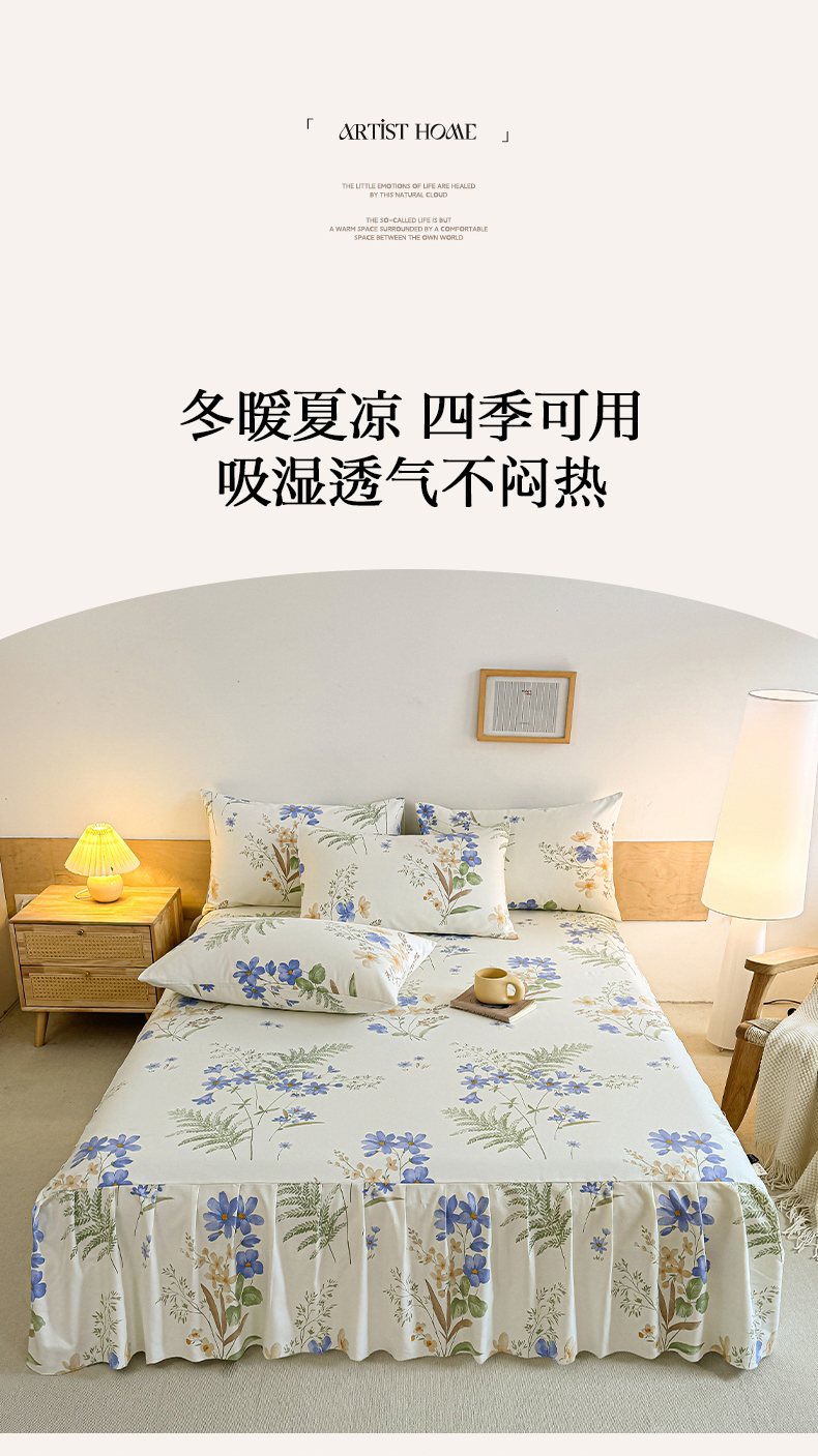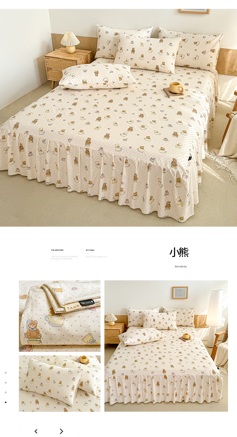 商品名称:布柔 2025新款100%全棉纯棉老粗布绣花印花凉席单品床裙 小熊