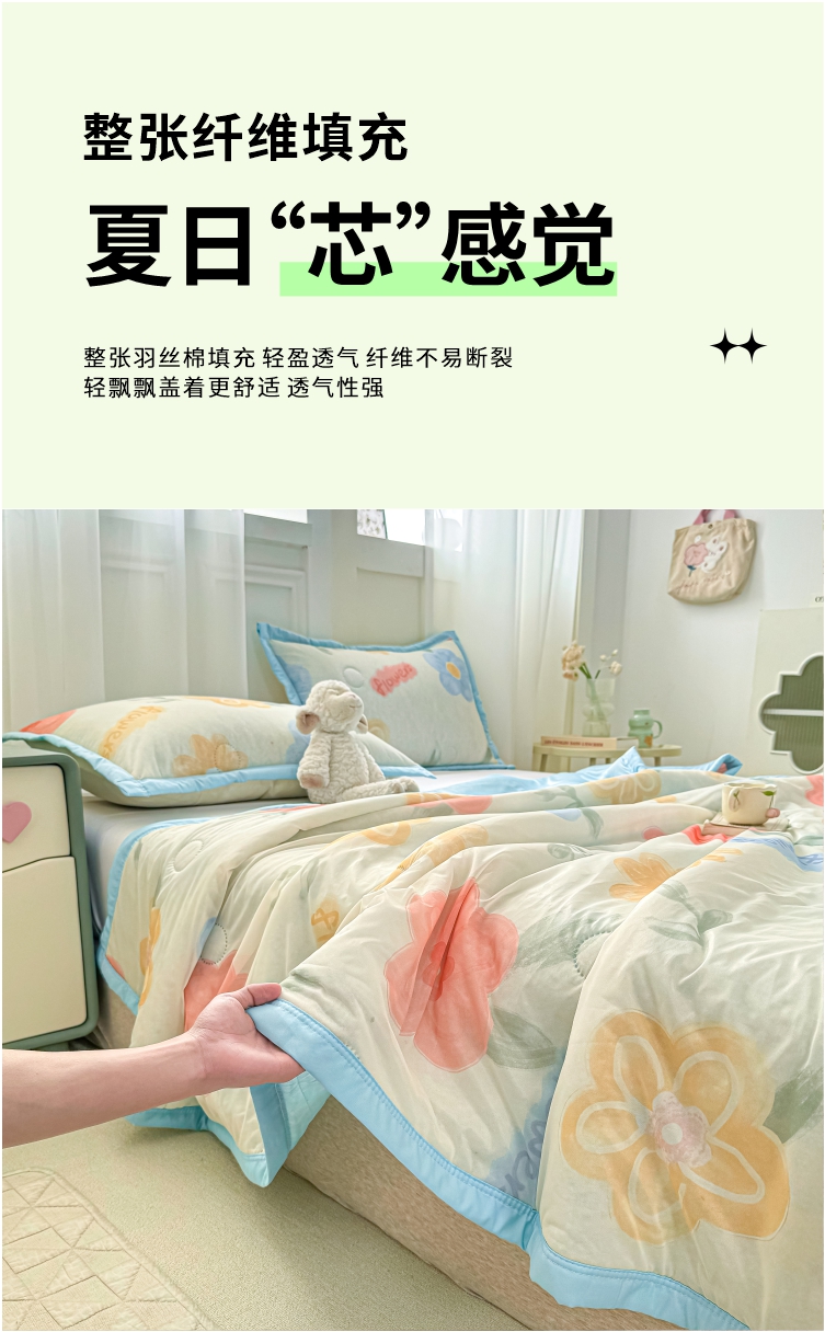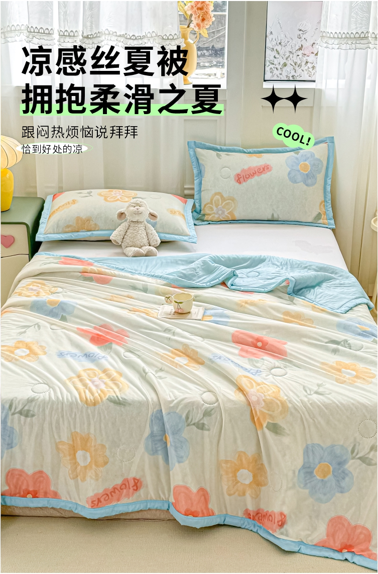顺顺家纺 2025新款凉感丝印花夏被空调被 夏花灿烂
