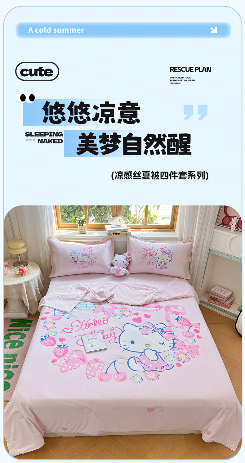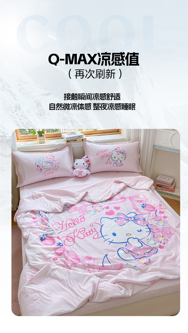 当前位置: 91家纺网 > 商品网购 > 床上用品 > 凉席 > 凉席套件 > 博雅 2025新款 三丽鸥凉感丝夏被冰丝凉席组合四件套 甜心KT