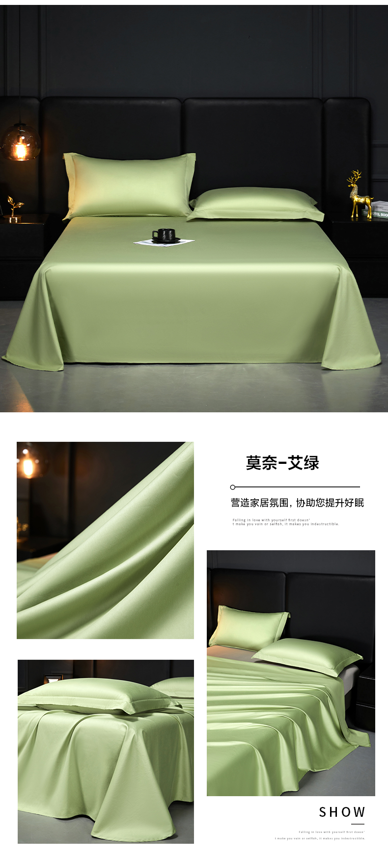 商品名称:秀色2025新款A类高端100s新疆长绒棉纯棉床单单件全棉单人贡缎加厚被单三件套 莫奈-艾绿
