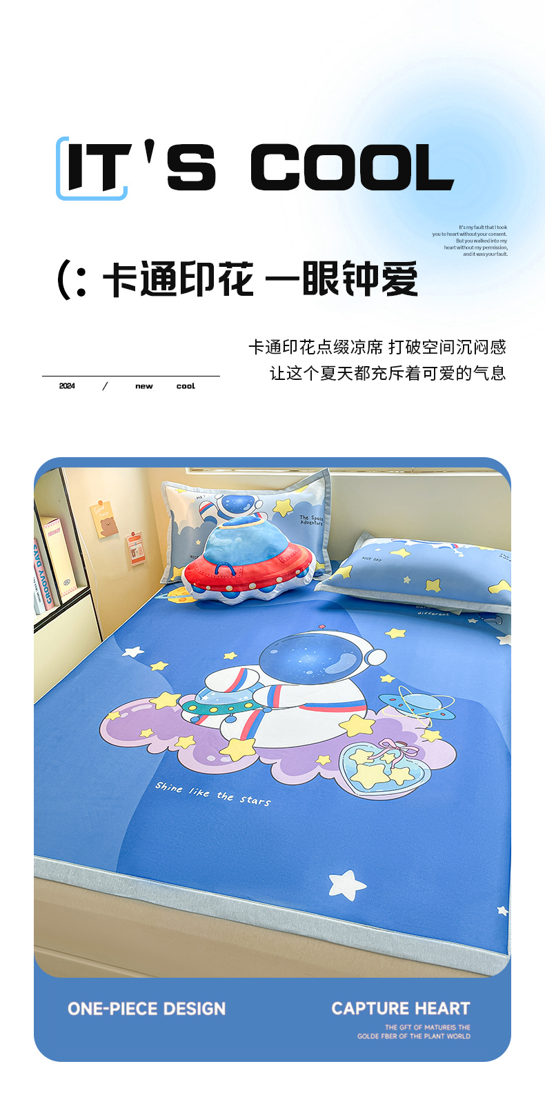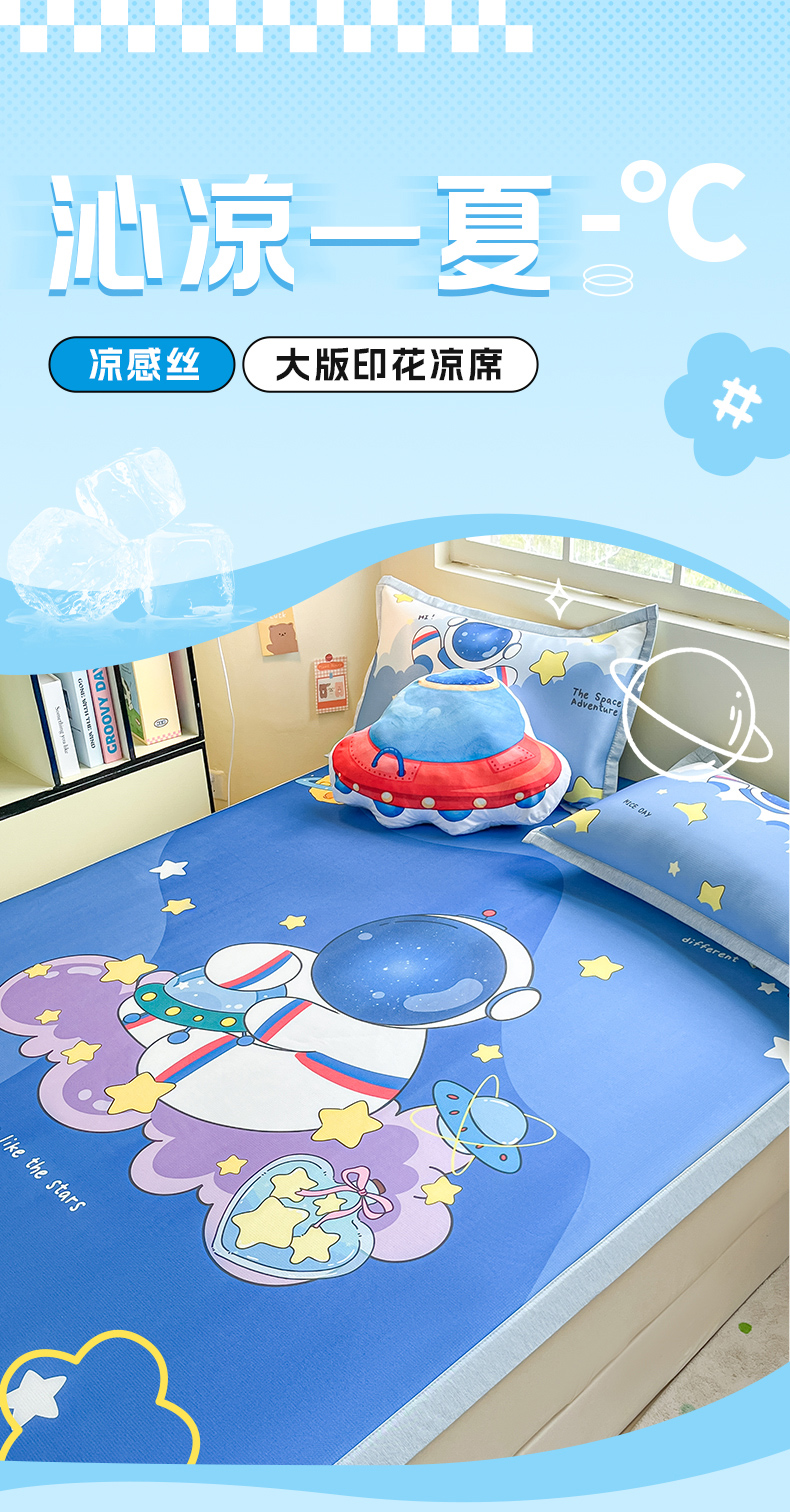 商品名称:博雅 2025新款独家版权A类大版数码印花1200D冰丝凉席 星际宇航员