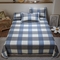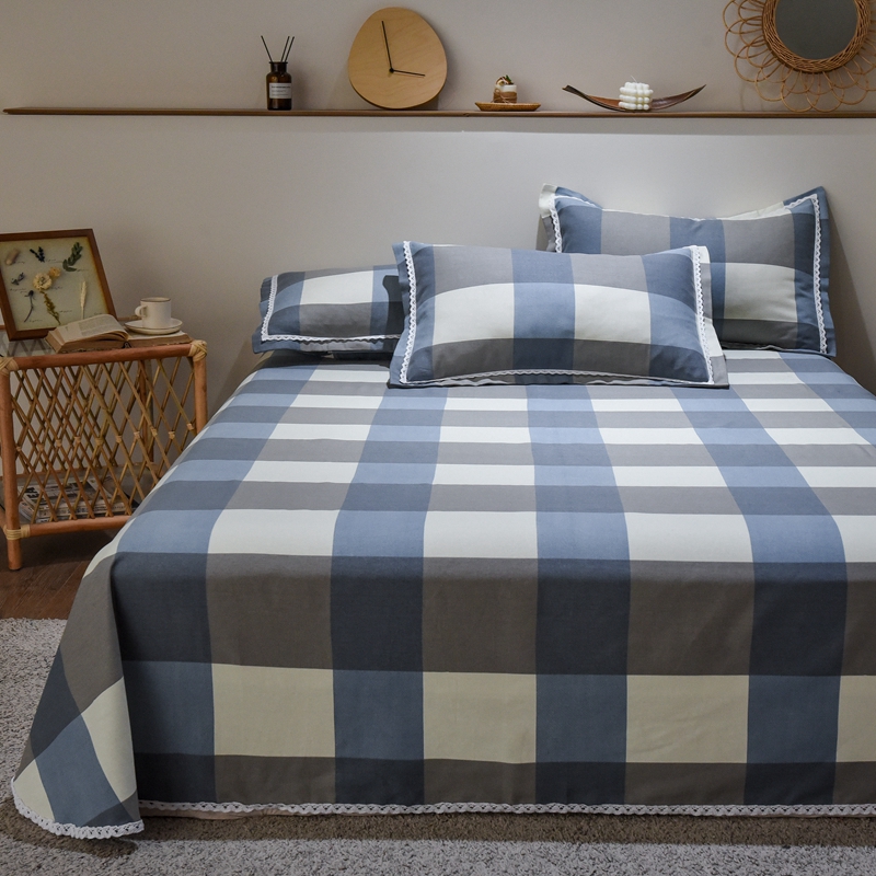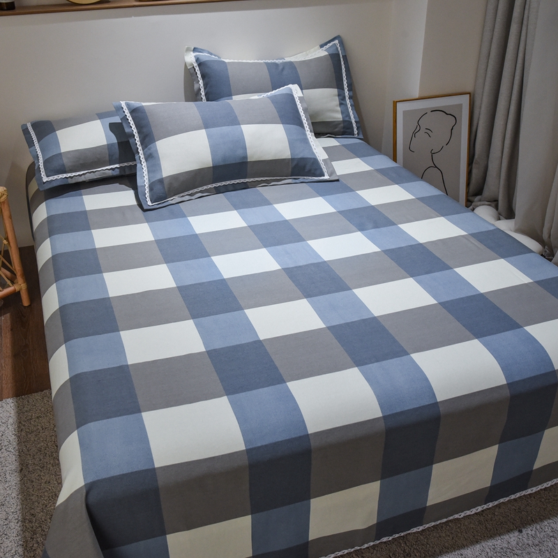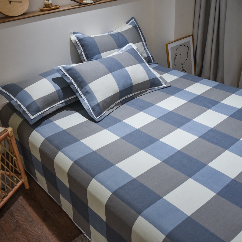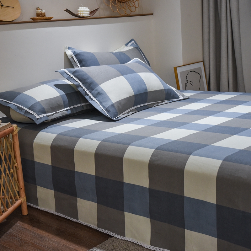 仟网汇 2025全棉老粗布蕾丝花边三件套(无纺布手提包装) 蓝大格