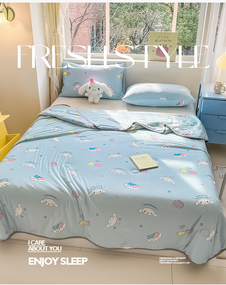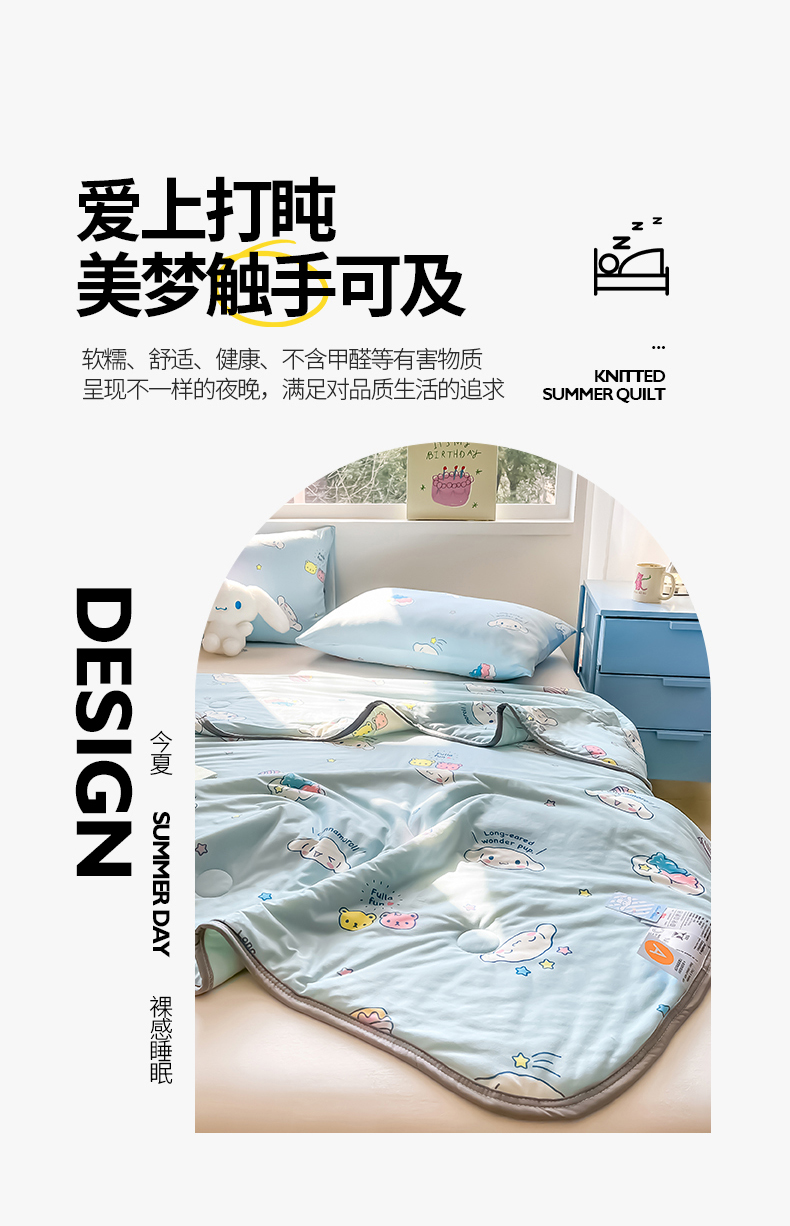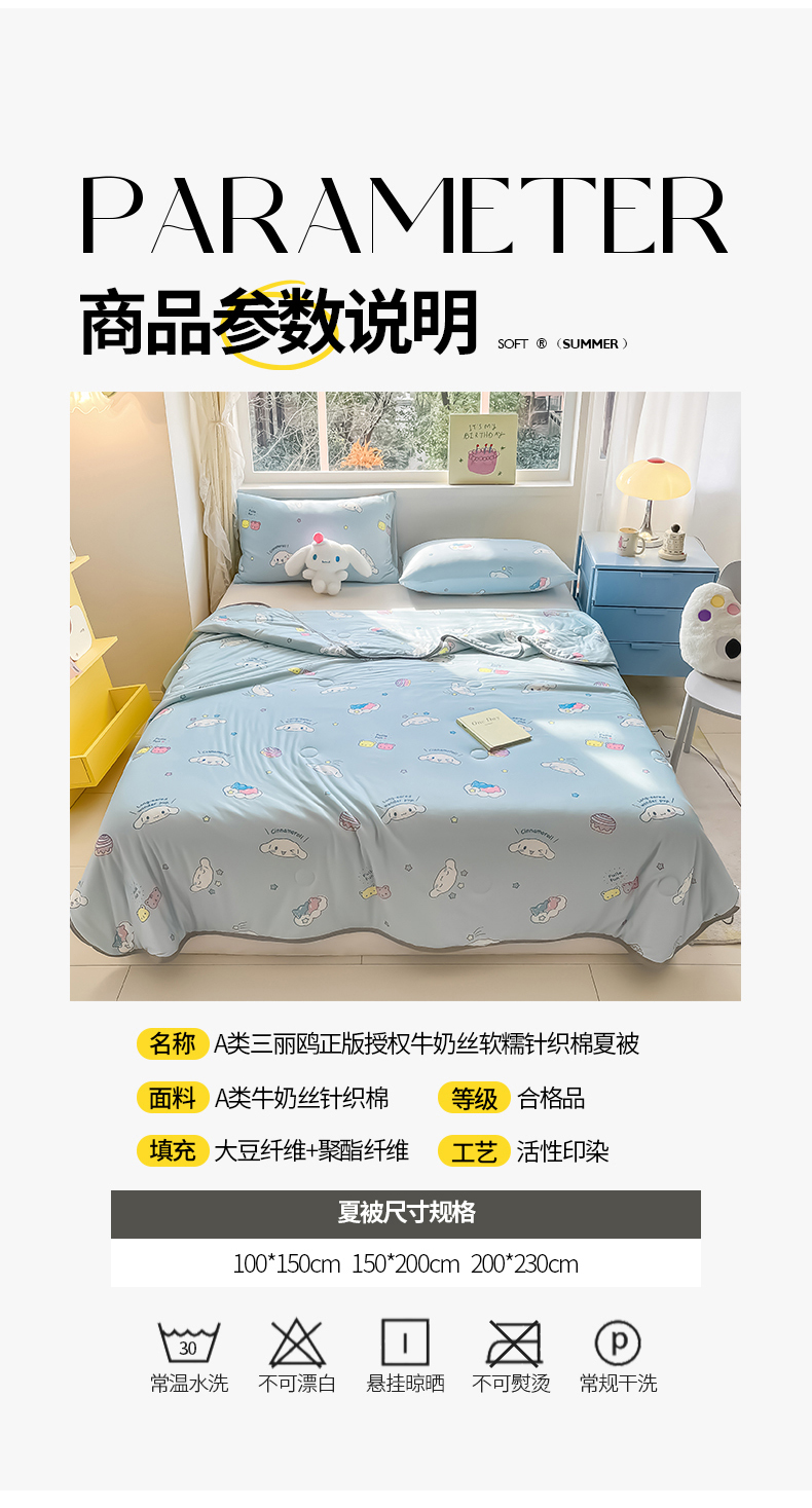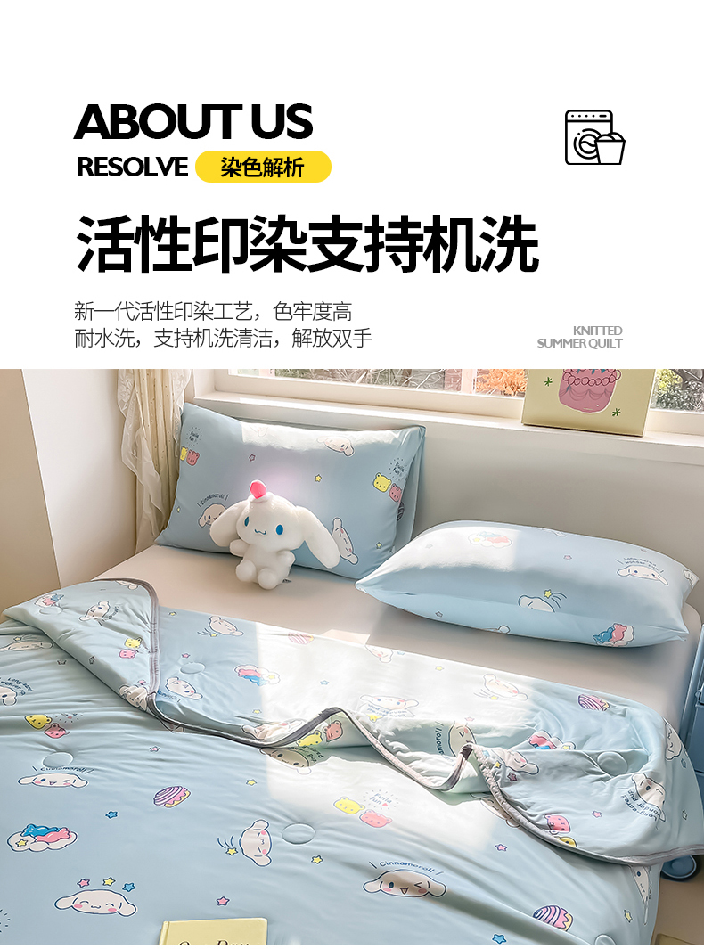 • 91家纺网 家纺一手货源 找家纺 桃子家居 2025新款A类三丽鸥正版授权高品质牛奶丝软糯针织棉大豆夏被系列 针织棉三丽鸥-可爱玉桂狗