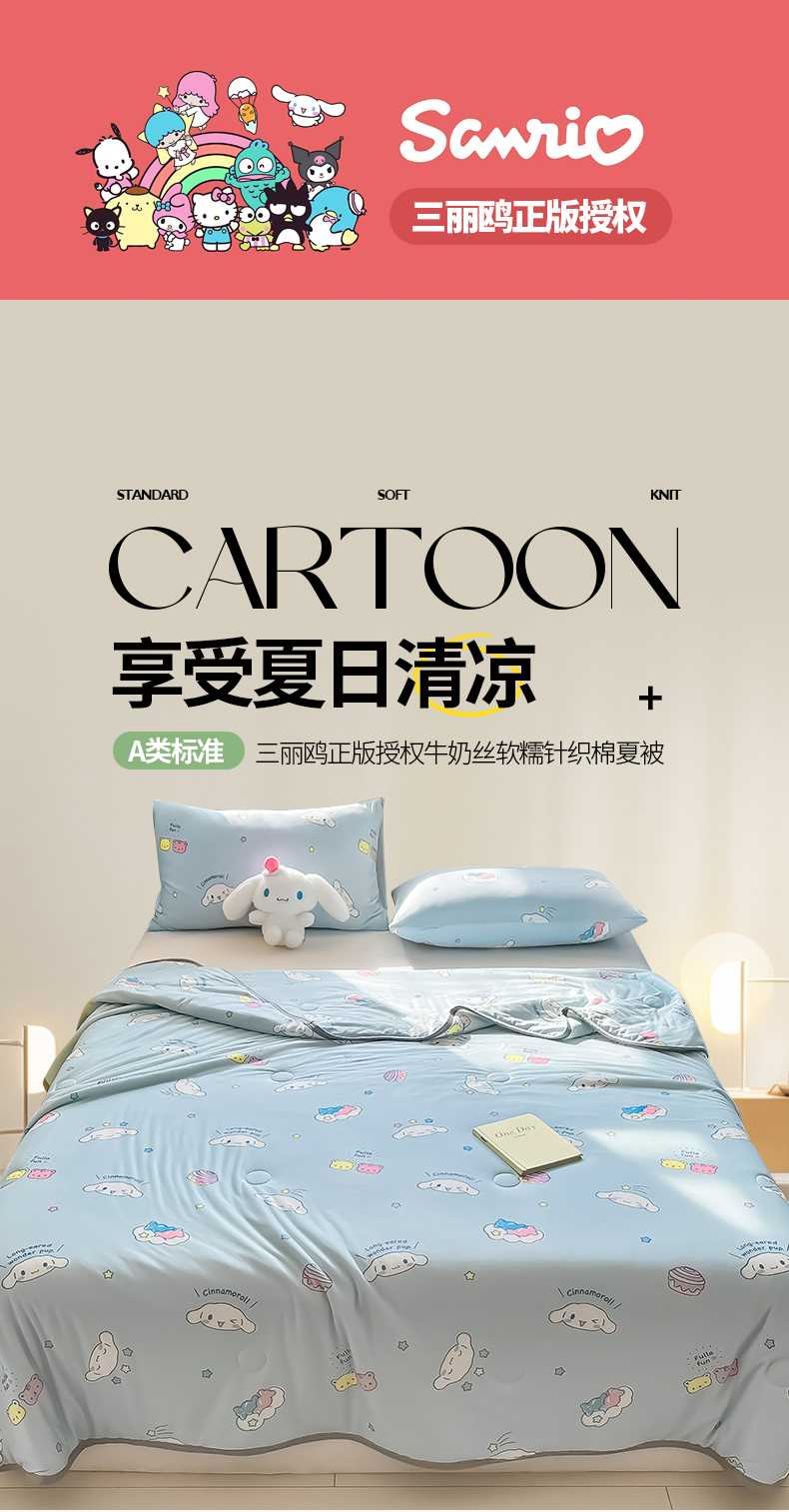• 91家纺网 家纺一手货源 找家纺 桃子家居 2025新款A类三丽鸥正版授权高品质牛奶丝软糯针织棉大豆夏被系列 针织棉三丽鸥-可爱玉桂狗 91家纺网 家纺一手货源 找家纺 桃子家居 2025新款A类三丽鸥正版授权高品质牛奶丝软糯针织棉大豆夏被系列 针织棉三丽鸥-可爱玉桂狗