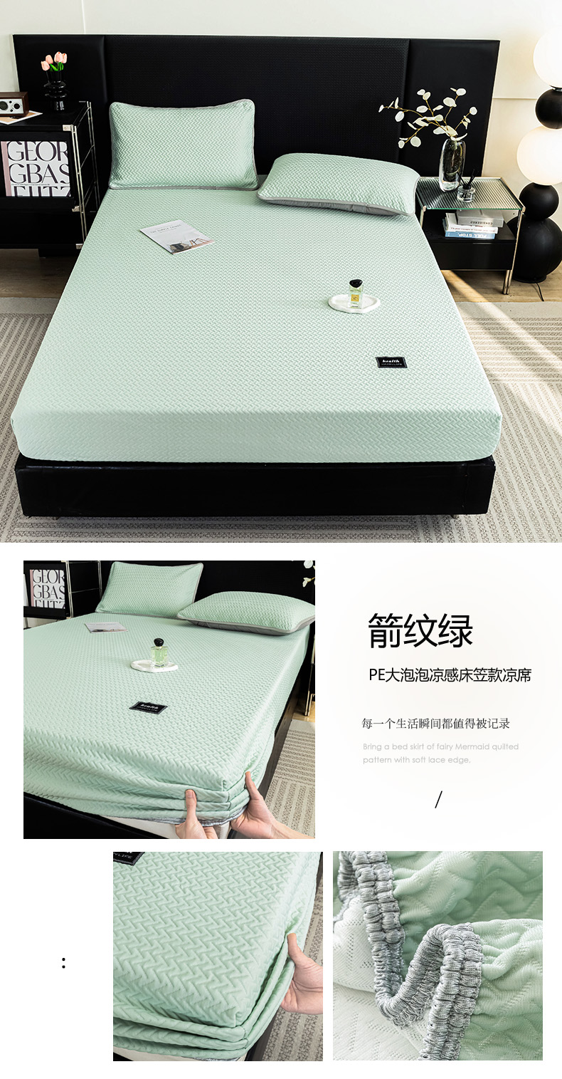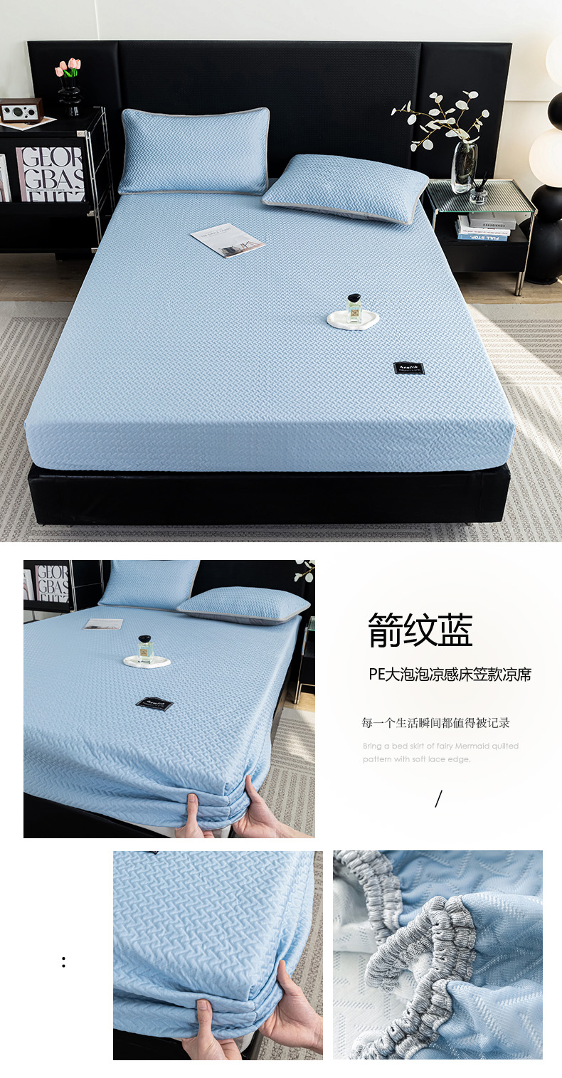 倾慕家纺 2025新款PE大泡泡凉感床笠款凉席 箭纹蓝