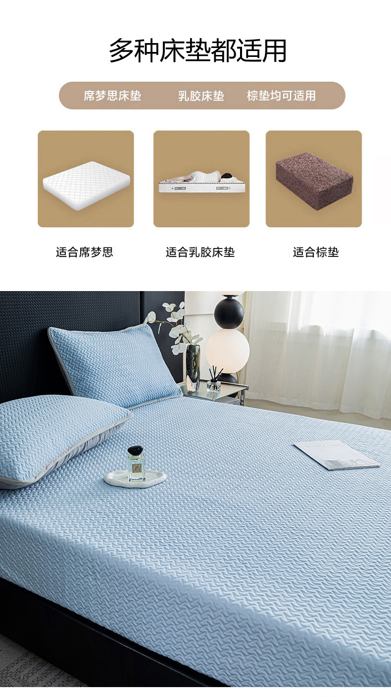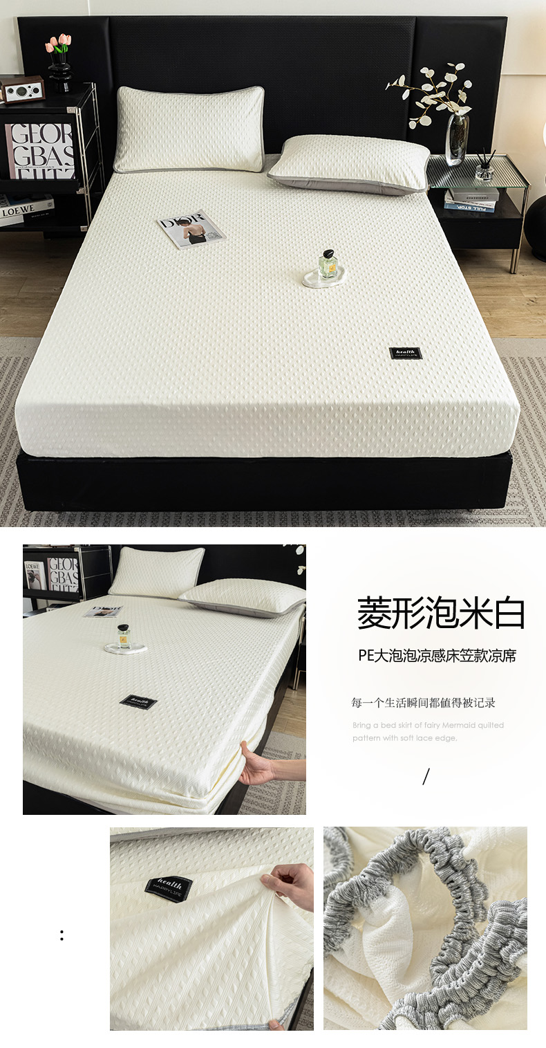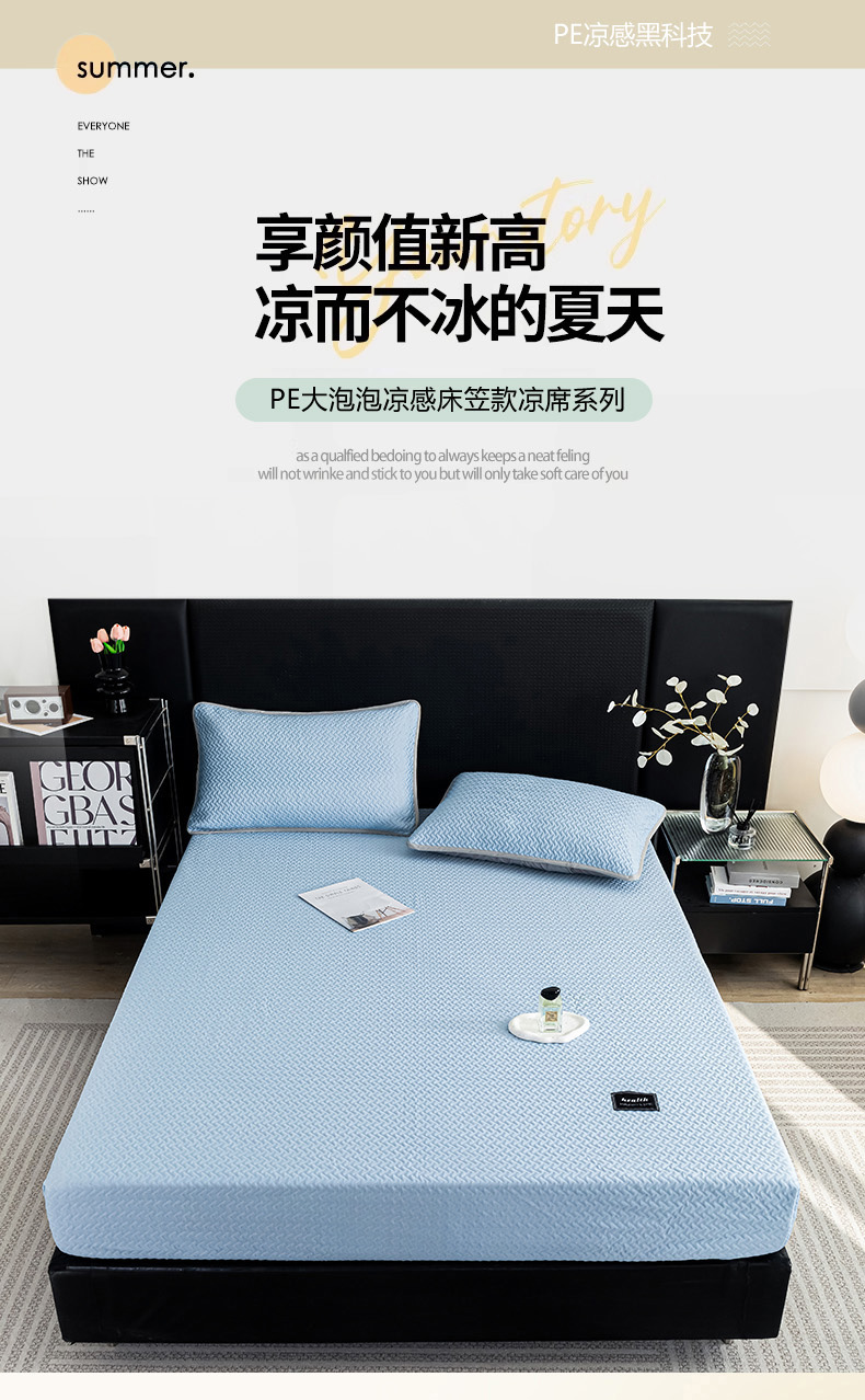 • 91家纺网 家纺一手货源 找家纺 倾慕家纺 2025新款PE大泡泡凉感床笠款凉席 箭纹蓝
