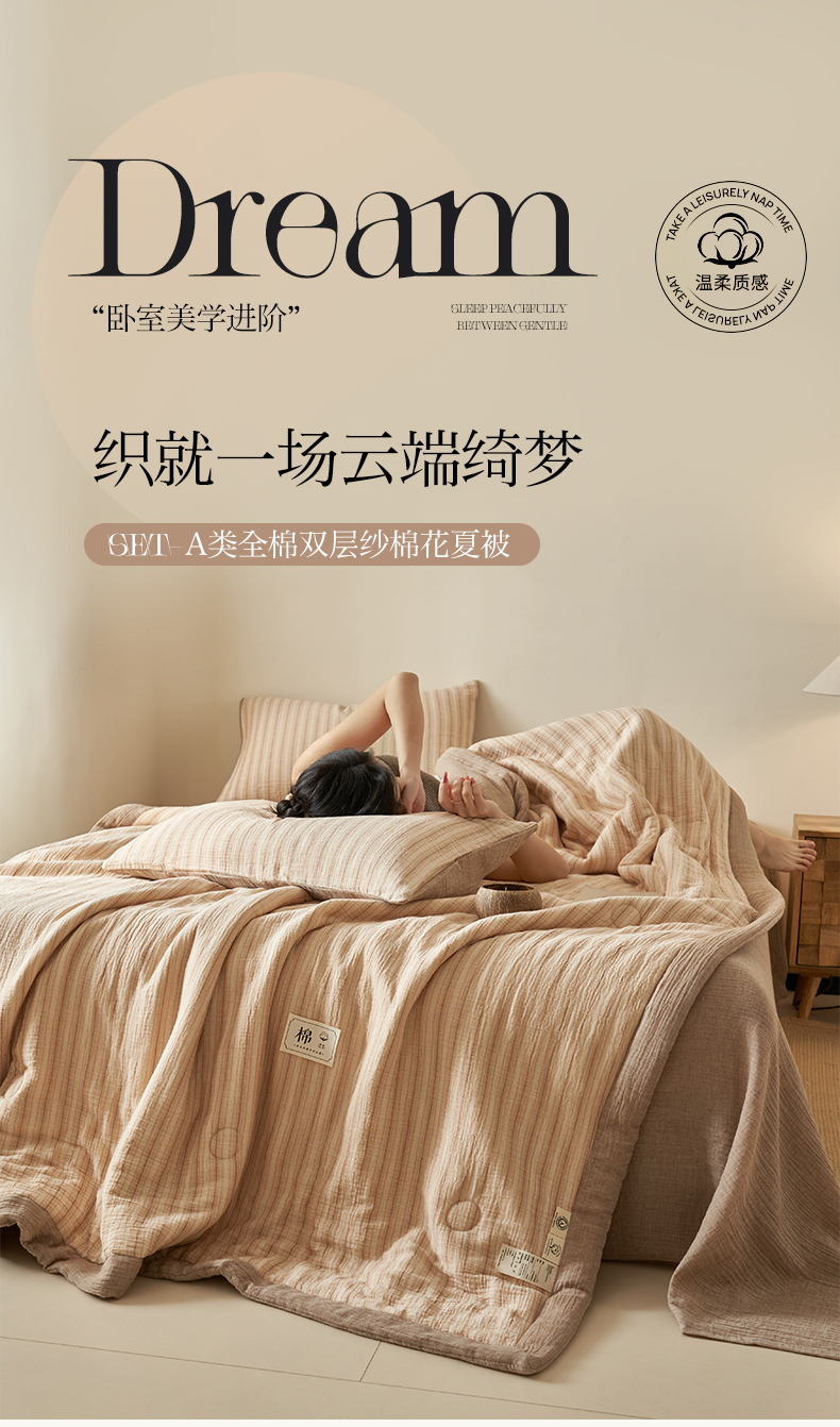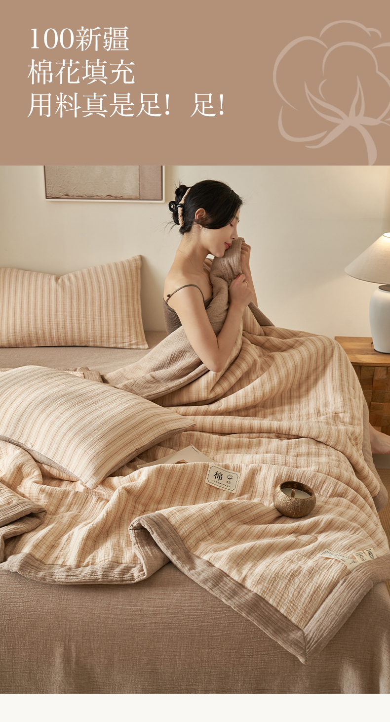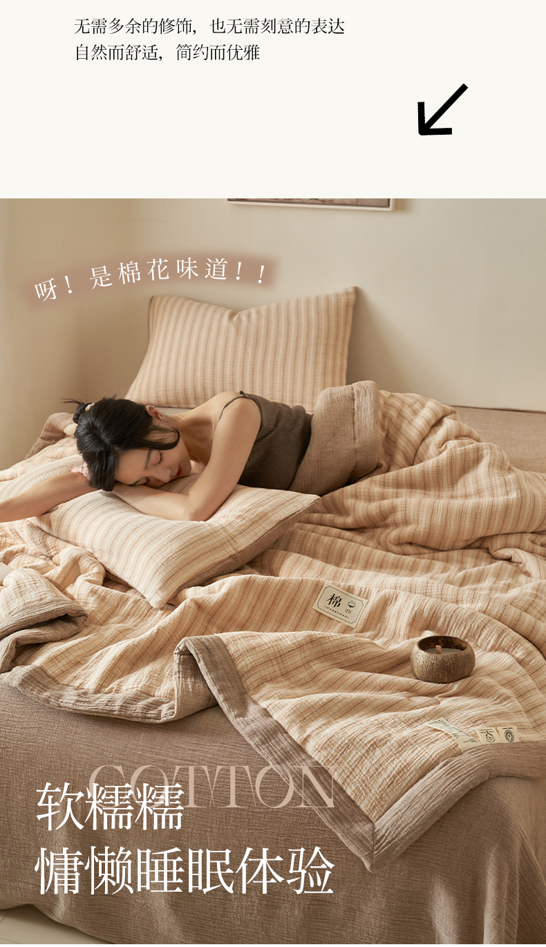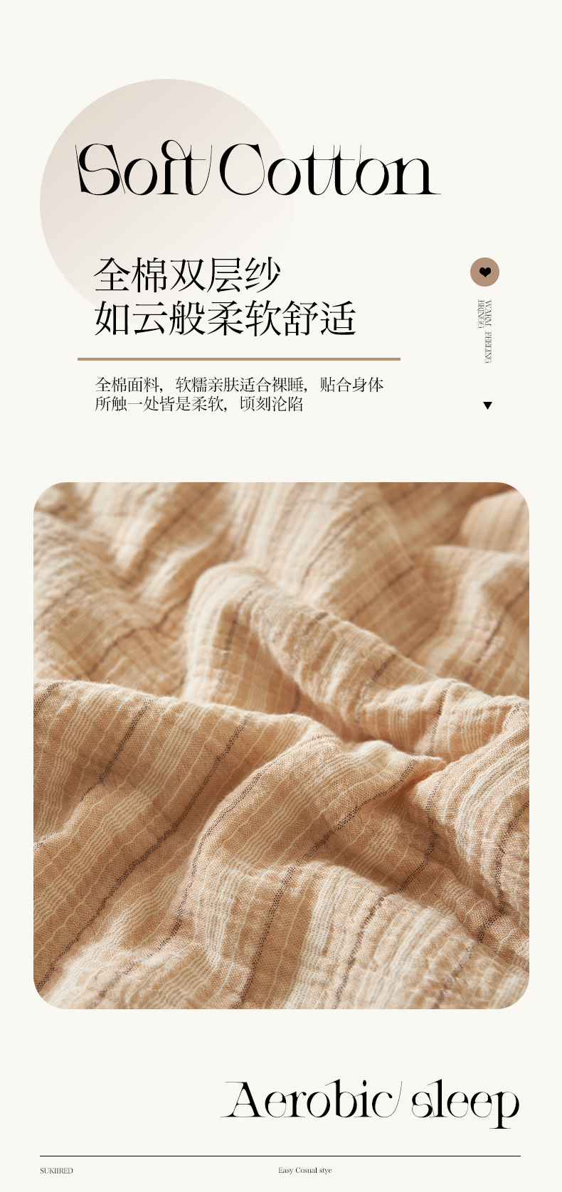 当前位置: 91家纺网 > 商品网购 > 床品套件 > 四件套 > 夏被四件套 > 简如 2025新款A类全棉双层纱皱皱纱夏被四件套-时予系列 时予-卡其