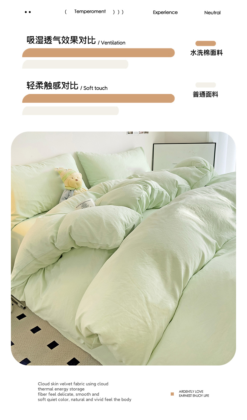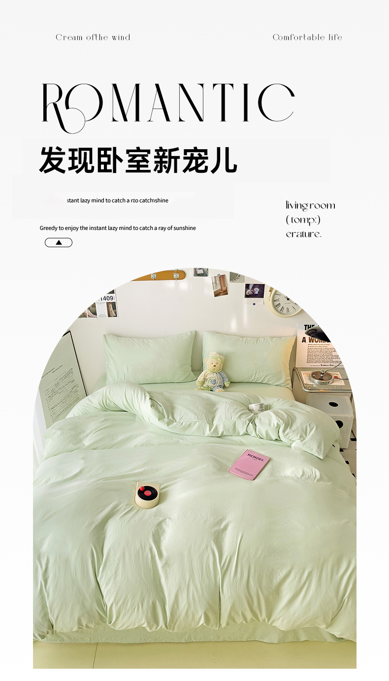 当前位置: 91家纺网 > 商品网购 > 床品套件 > 四件套 > 水洗棉四件套 > 艾特你 2025新款简约纯色水洗棉四件套 优雅藻绿