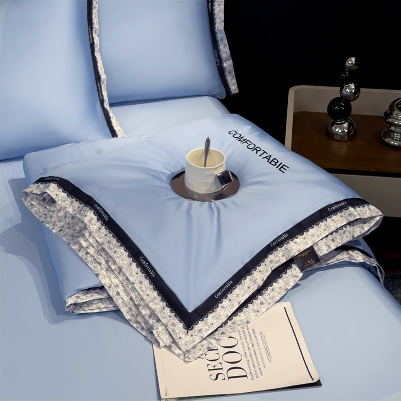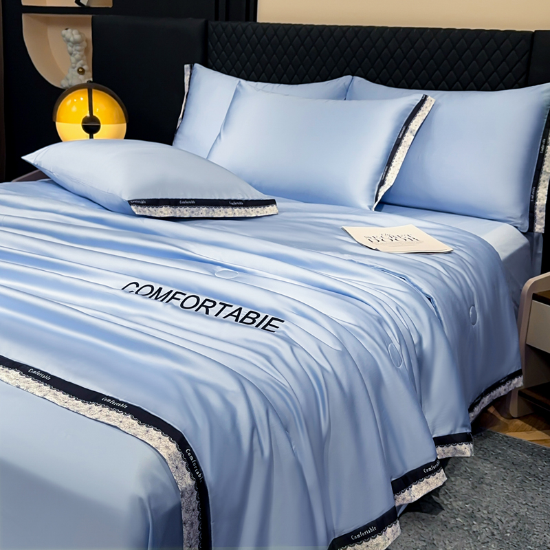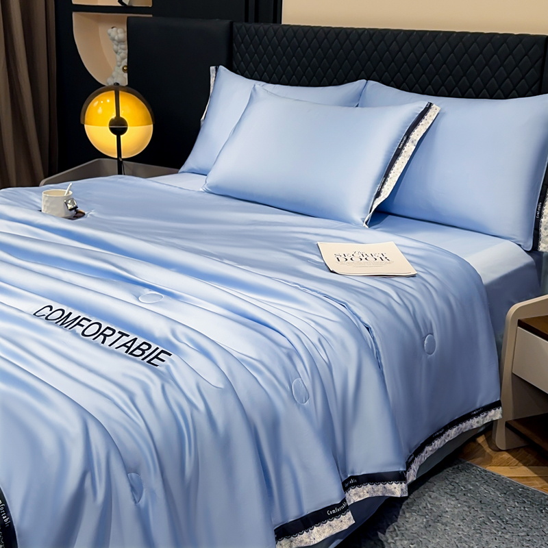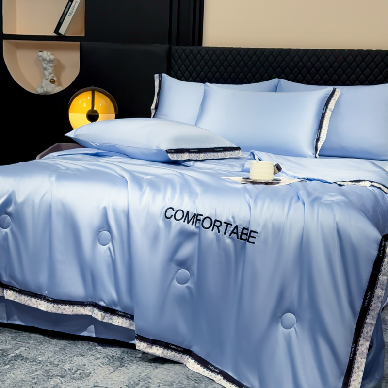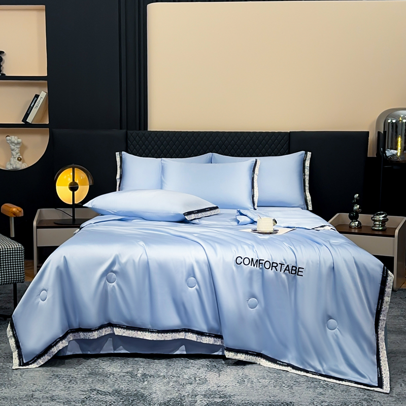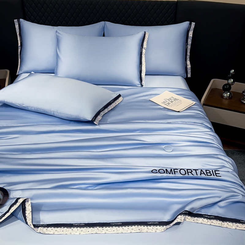 2025新款清凉舒适水洗冰丝刺绣夏被四件套 迷境-时光蓝