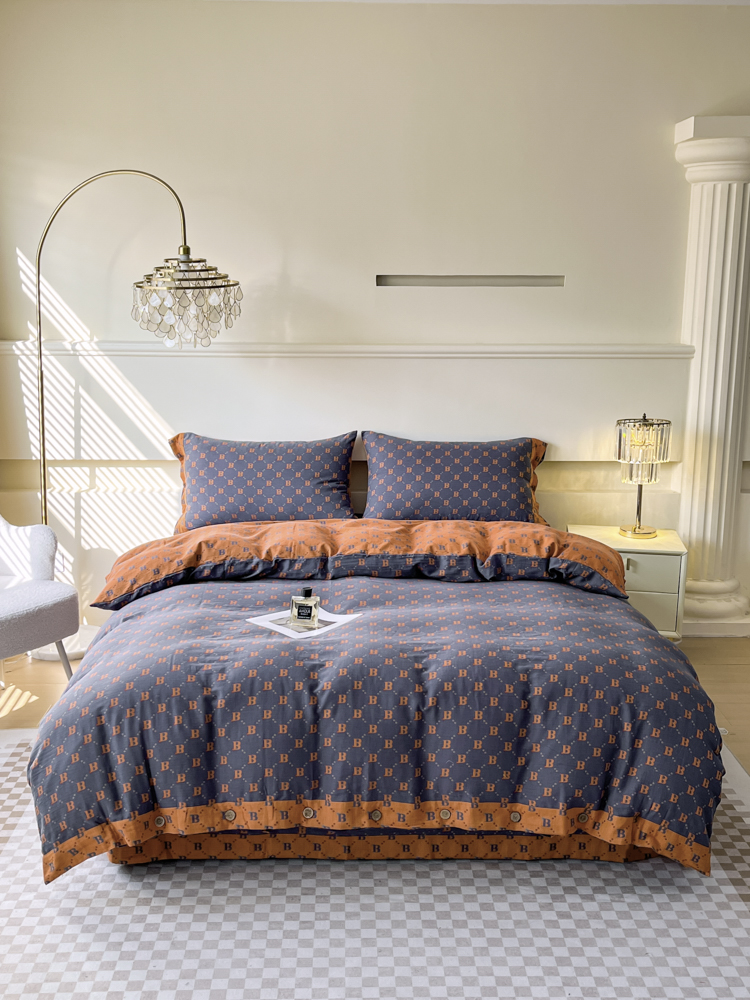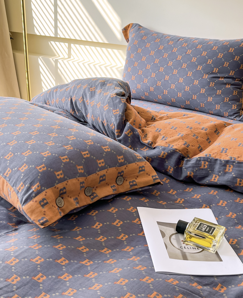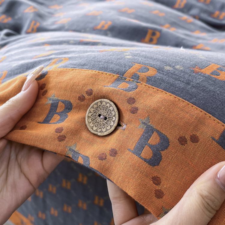 商品名称:2025新款全棉色织双层纱纽扣款四件套 城市格调-兰桔
