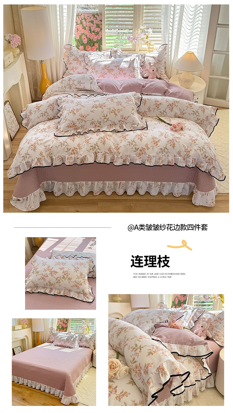 商品名称:韩约家纺 2025新款1皱皱纱时尚花边款四件套 连理枝