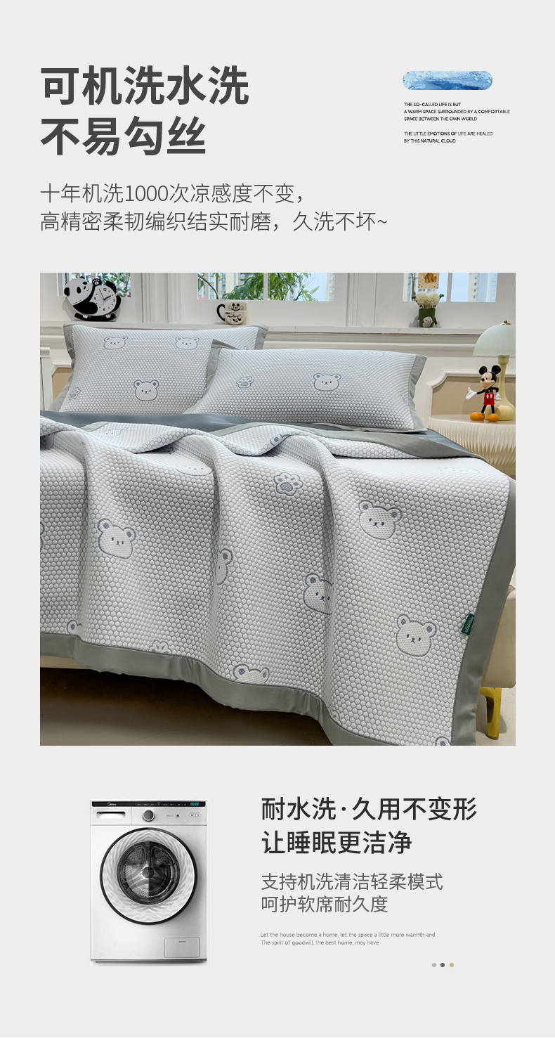 (总)席世家 2025新款A类凉感冰豆豆凉席-花卉卡通系列,呆萌熊猫,绿意,萌兔,小熊-粉,小熊-蓝,花漾
