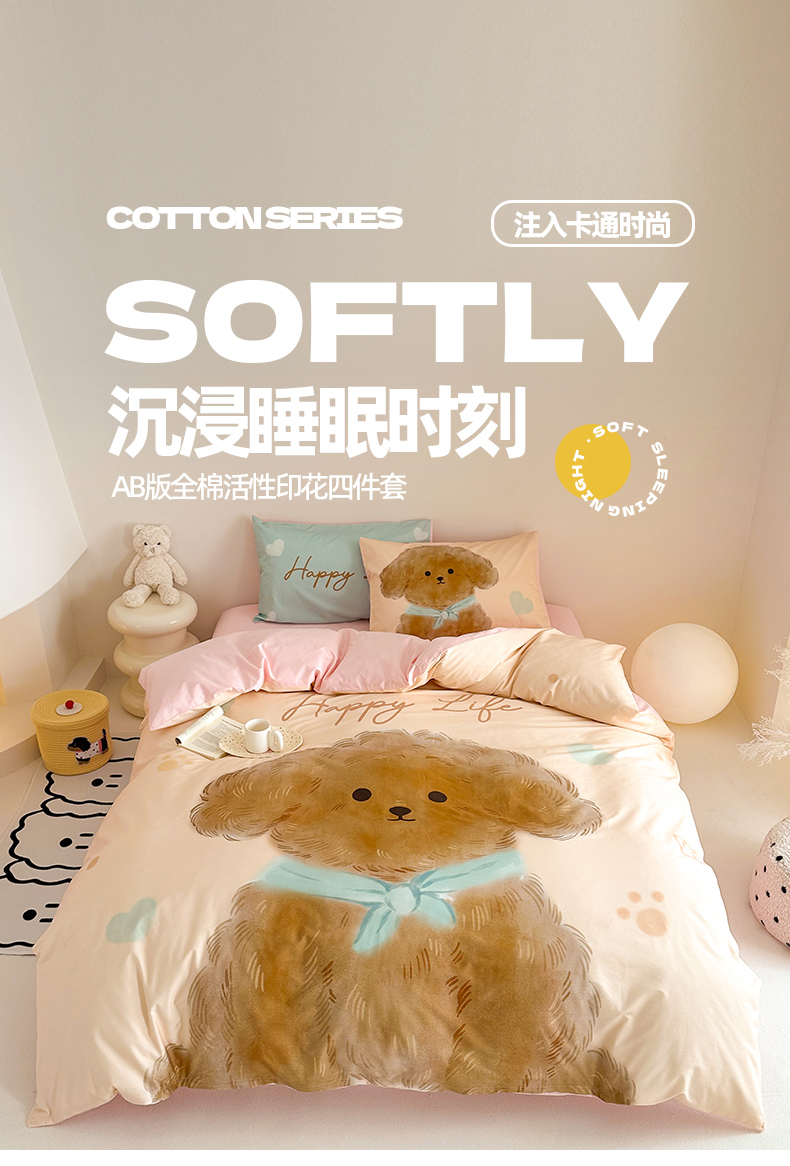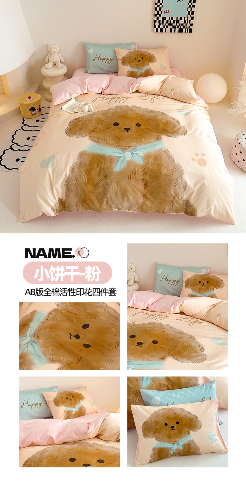当前位置: 91家纺网 > 商品网购 > 床品套件 > 四件套 > 全棉普通四件套 > 2025新款全棉大版卡通数码印花纯棉四件套 小饼干(粉)