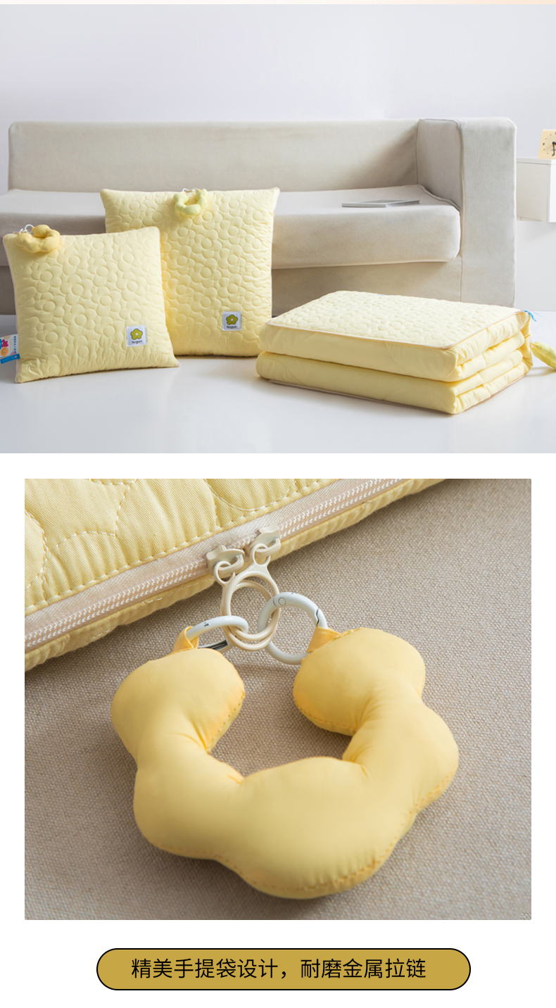 (总)雷娜家居 2025新款色织手提款小兔子系列抱枕被,大耳朵兔粉,大耳朵兔黄
