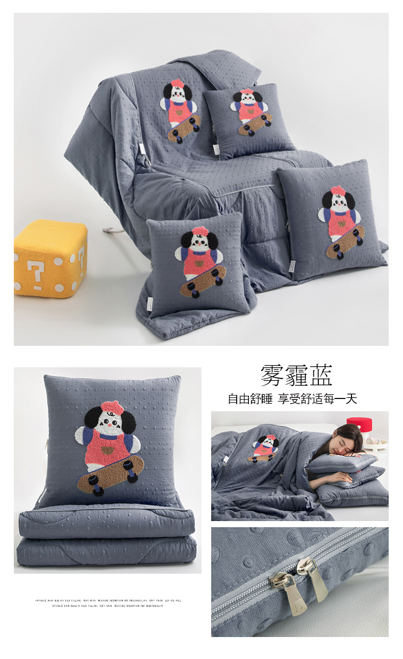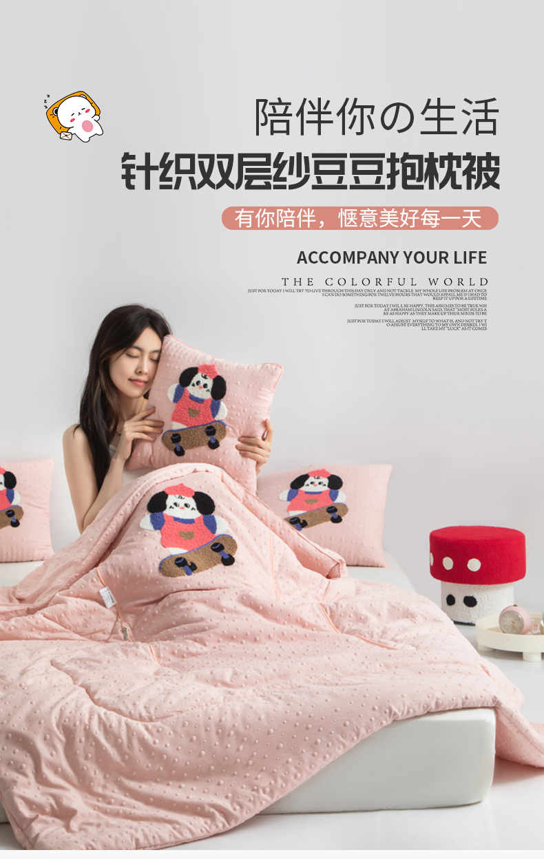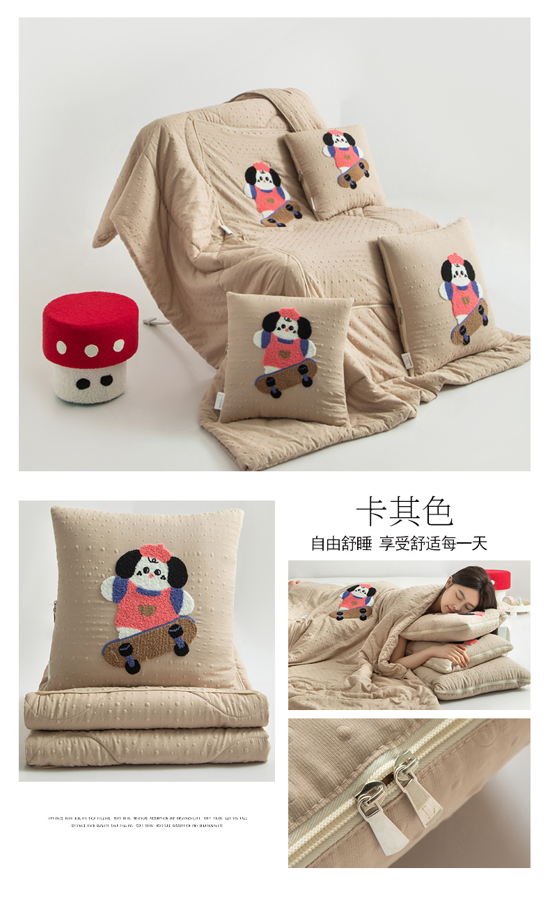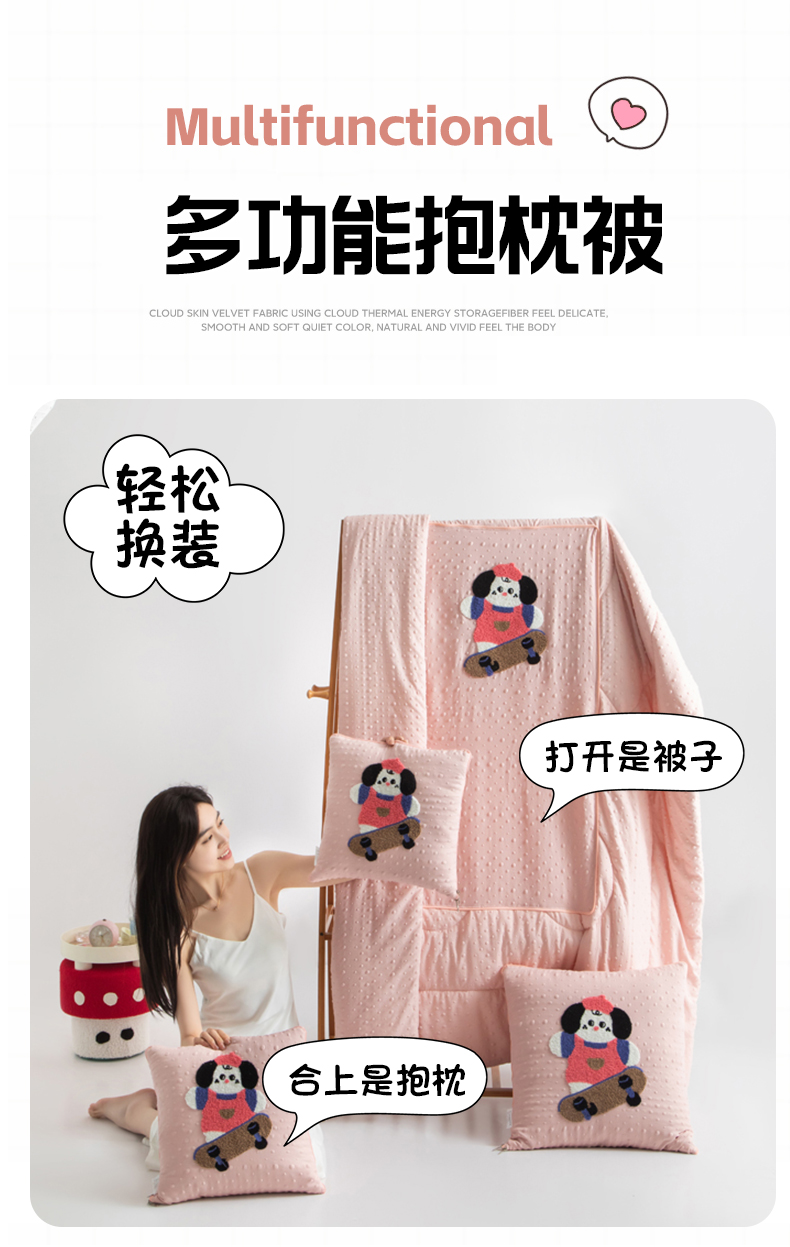 商品名称:(总)雷娜家居 2025新款针织双层纱系列豆豆抱枕被-滑板狗