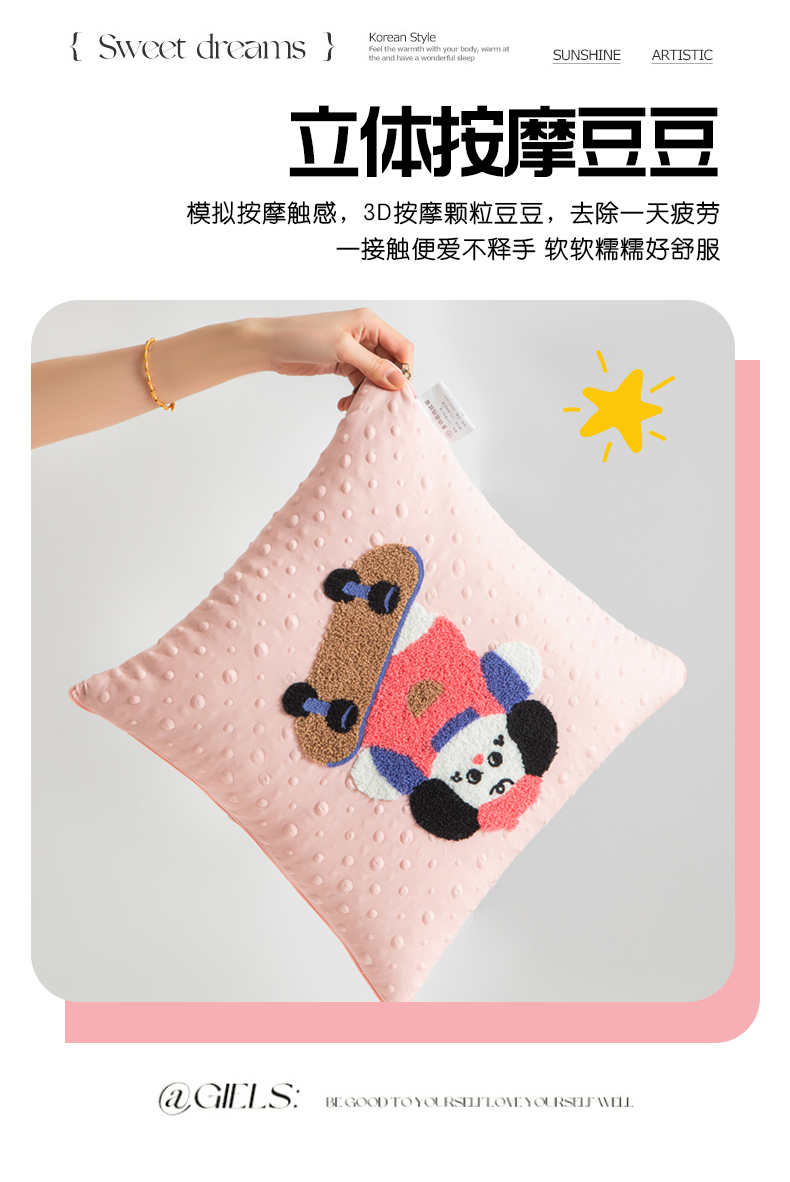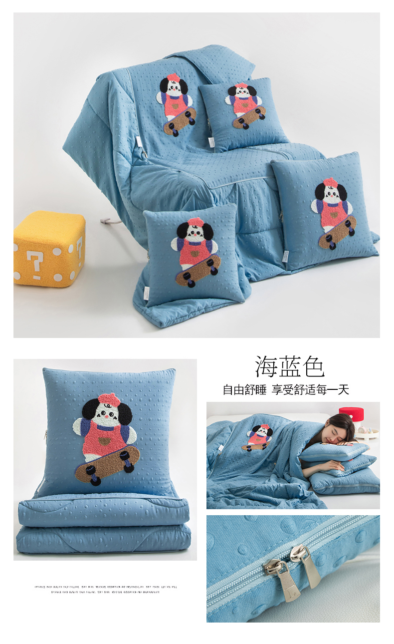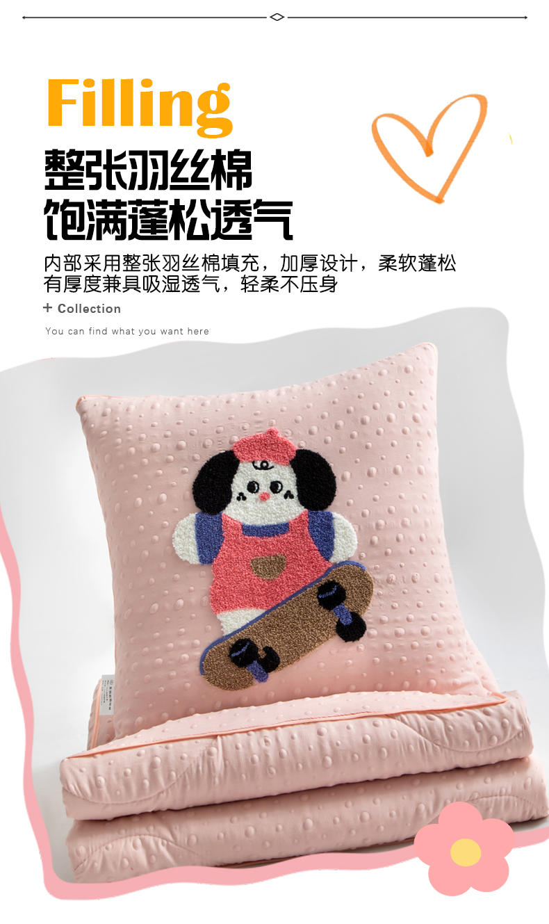 商品名称:(总)雷娜家居 2025新款针织双层纱系列豆豆抱枕被-滑板狗