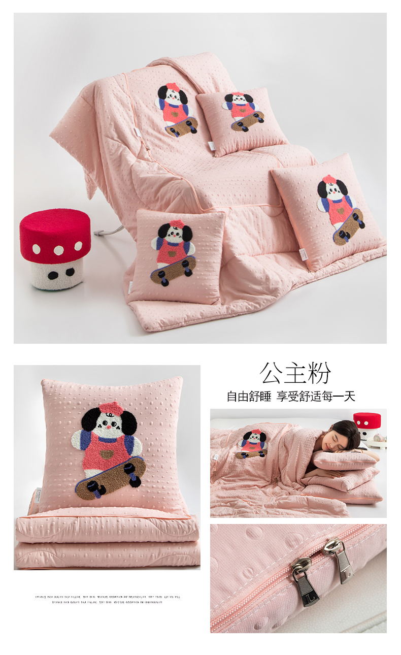 (总)2025新款加厚款图拉拉系列抱枕被,图拉拉粉色,图拉拉咖啡色,图拉拉卡其色