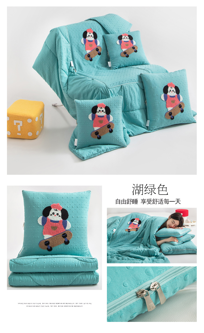 (总)雷娜家居 特色手提款帆布面料卡通绣花抱枕被,手提大眼萌,手提小怪鱼,熊猫艾草绿
