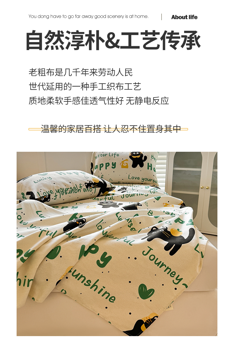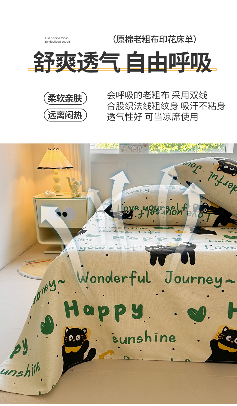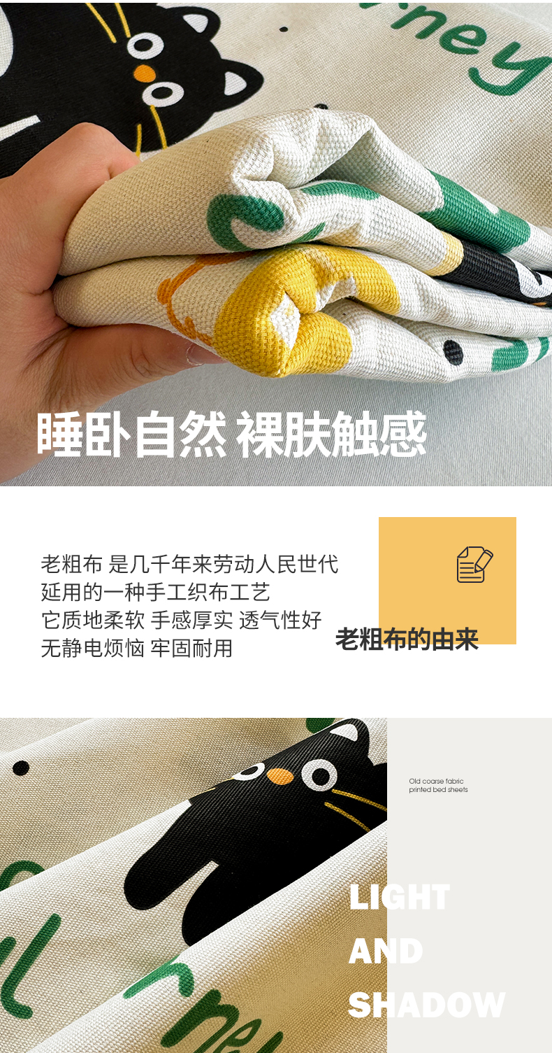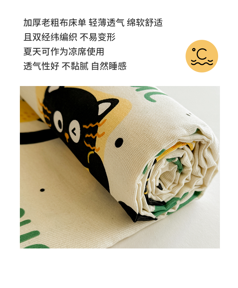 • 91家纺网 家纺一手货源 找家纺 晓时候 2025原棉老粗布床单凉席三件套软凉席子单床单 幸运黑喵