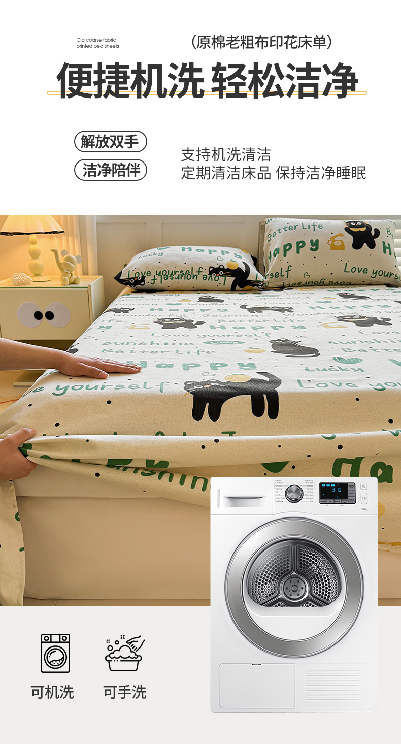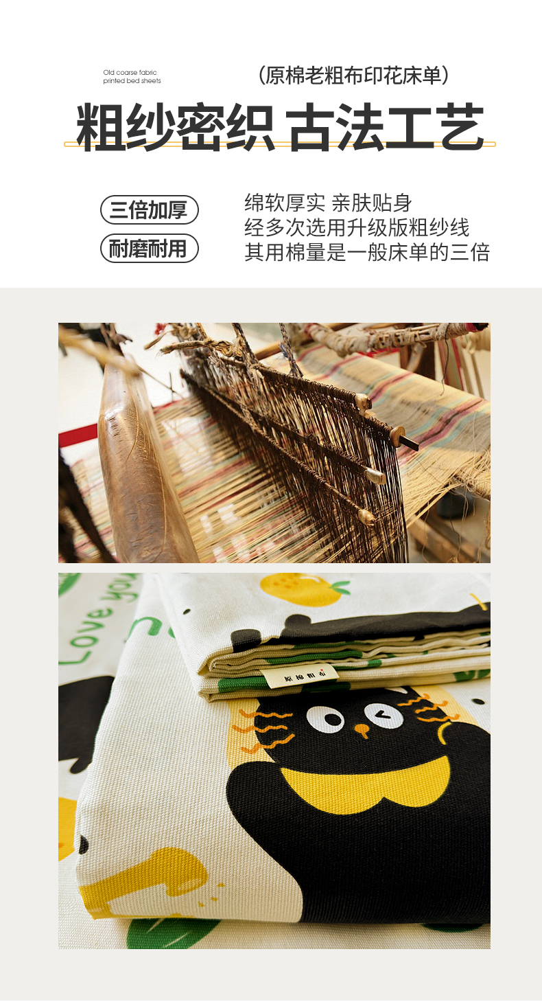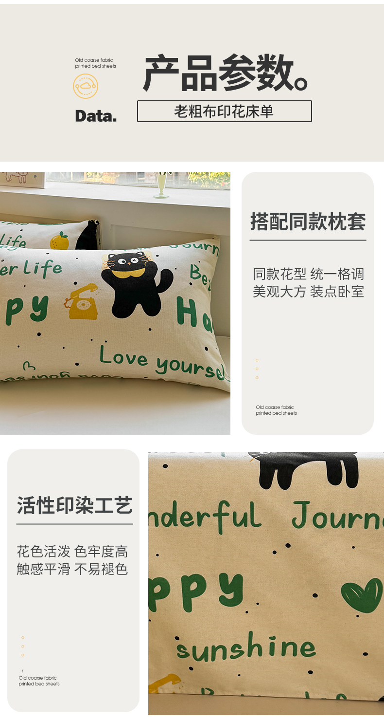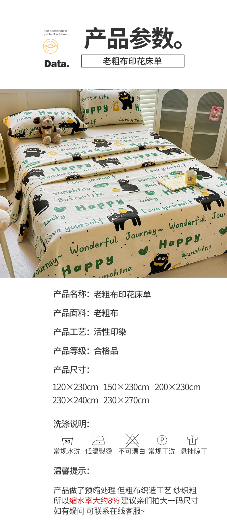 • 91家纺网 家纺一手货源 找家纺 晓时候 2025原棉老粗布床单凉席三件套软凉席子单床单 幸运黑喵