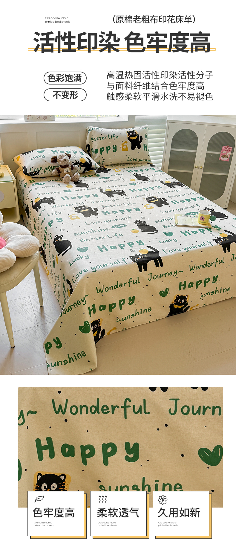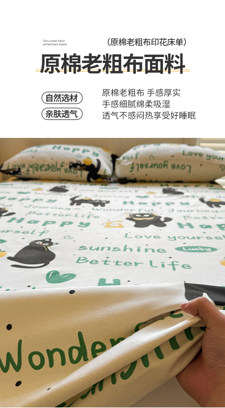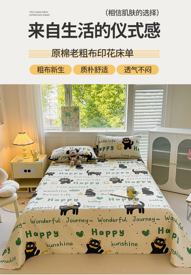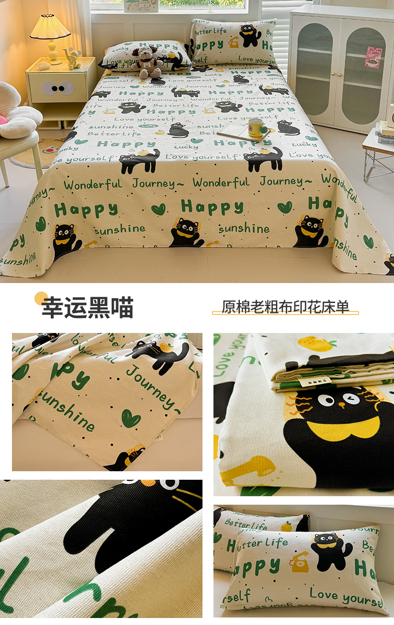 晓时候 2025原棉老粗布床单凉席三件套软凉席子单床单2025新款老粗布床单 幸运黑喵