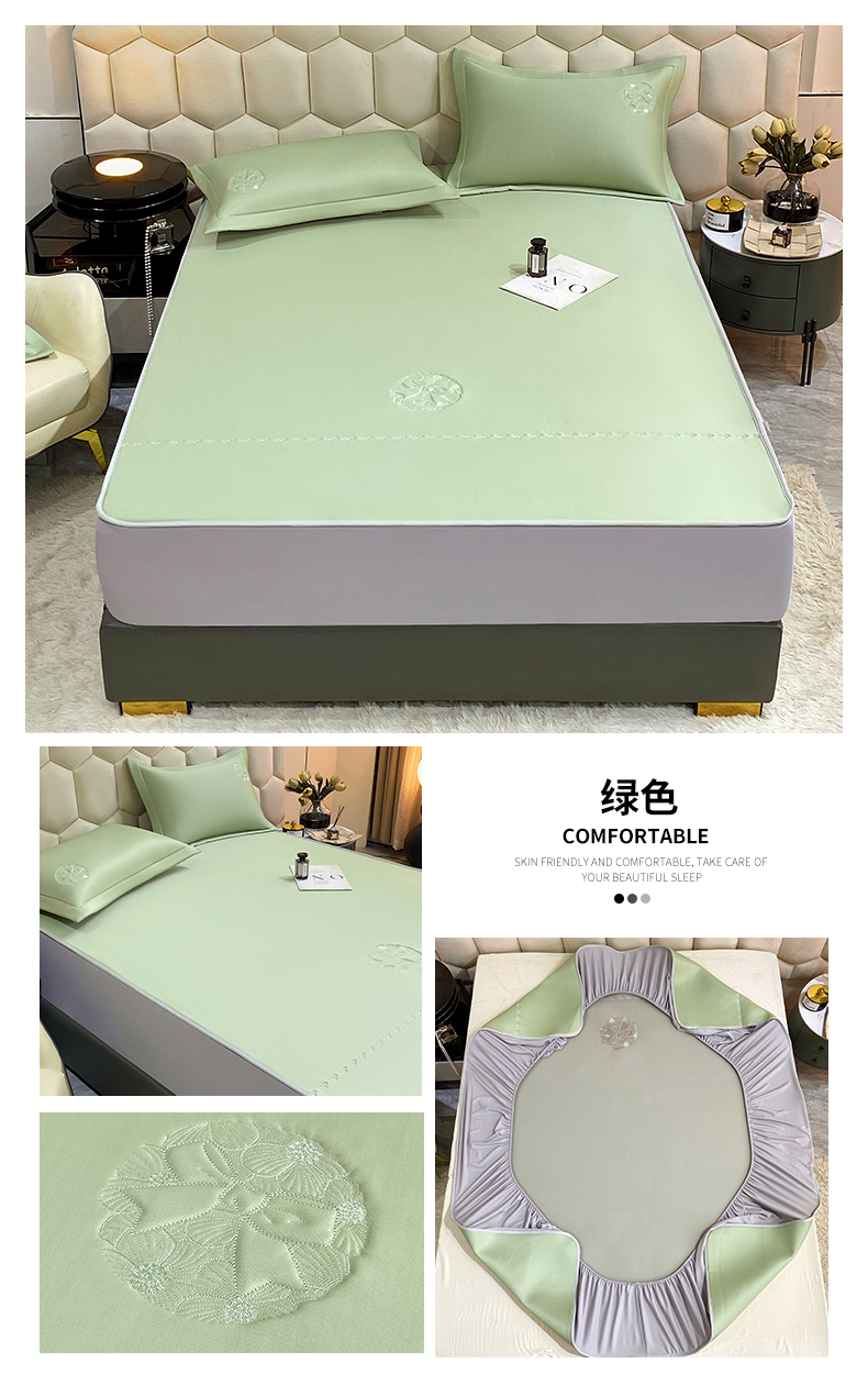 鼎飞家纺 2025新款水晶凉感席床笠款 绿色