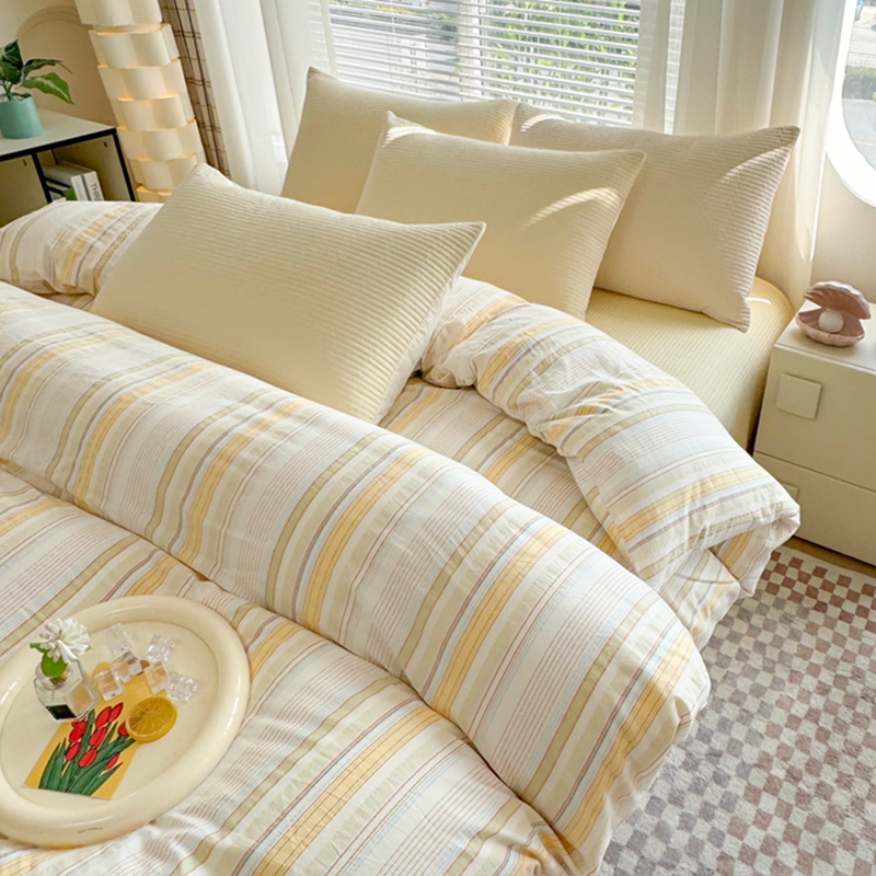 梦精灵家纺 2025新款全棉色织单枕套 鹅黄