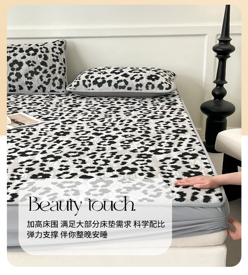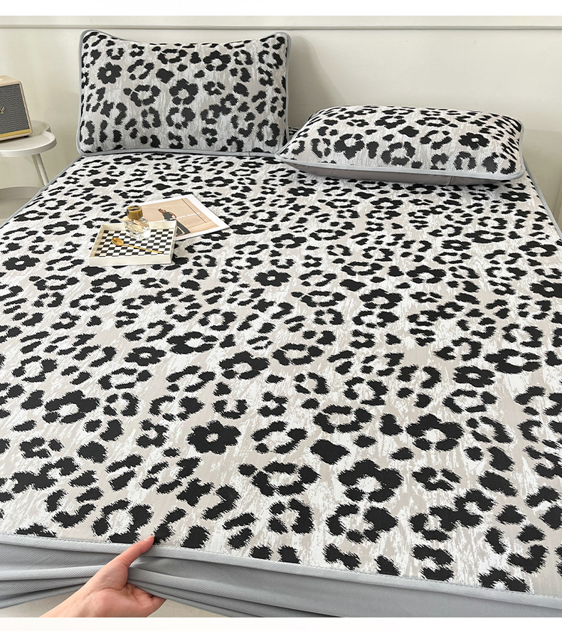 子曰 2025新款高定版A类PE聚乙烯凉感凉席提花凉席床笠 豹纹-灰