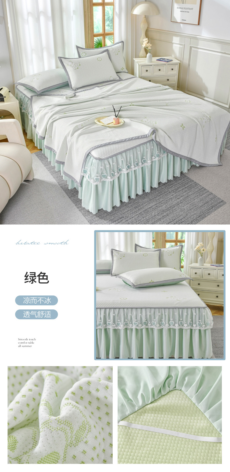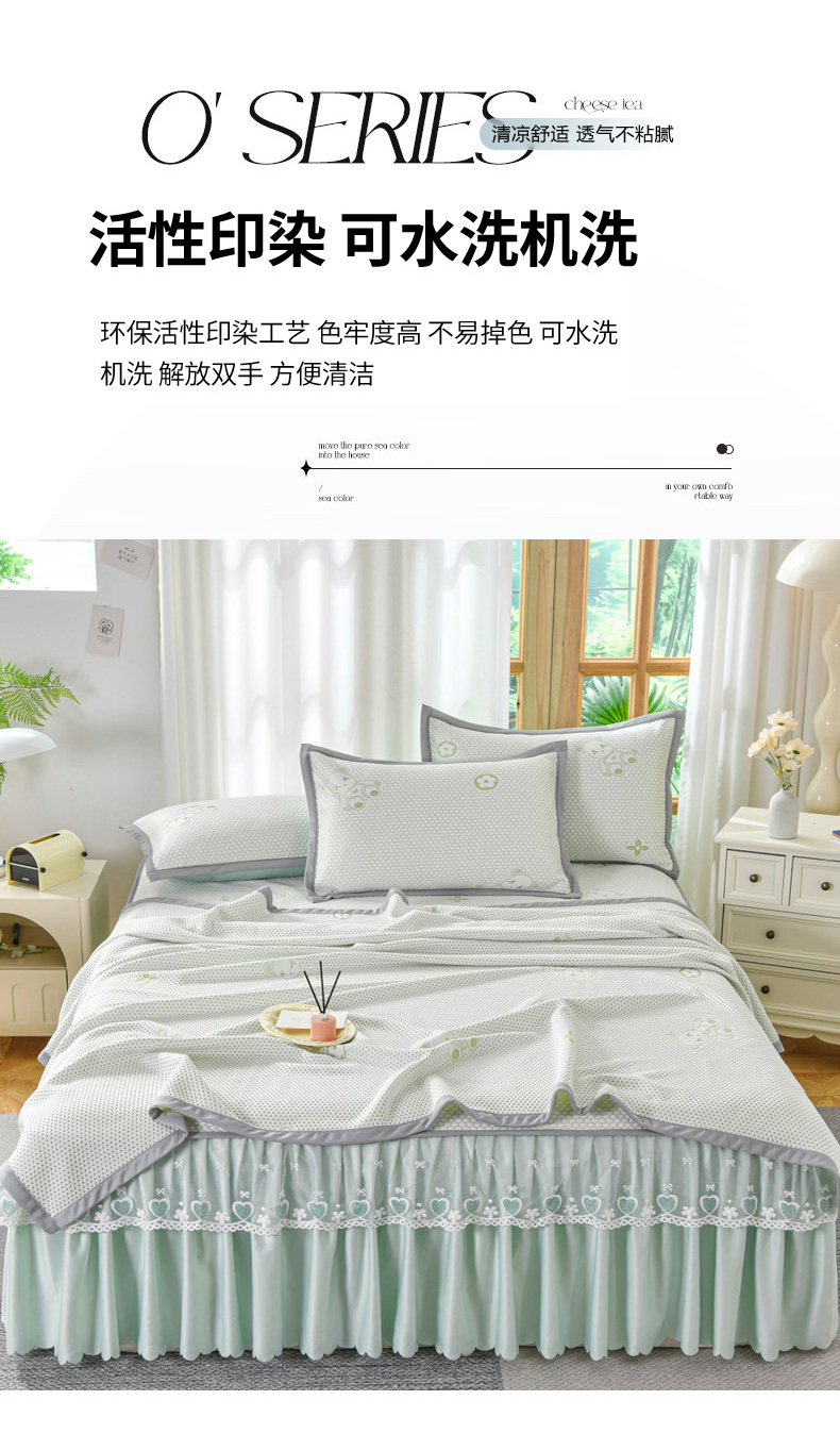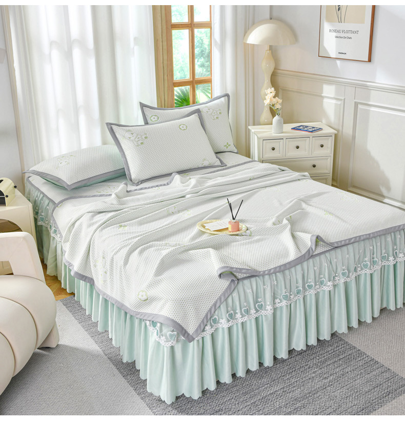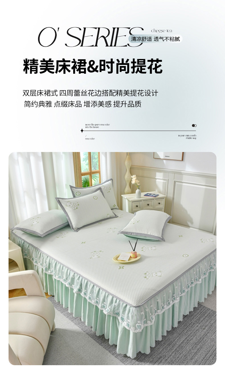 当前位置: 91家纺网 > 商品网购 > 床上用品 > 凉席 > 其他凉席 > 品乐家纺 2025新款床裙款提花冰豆豆套件凉席席子 绿色