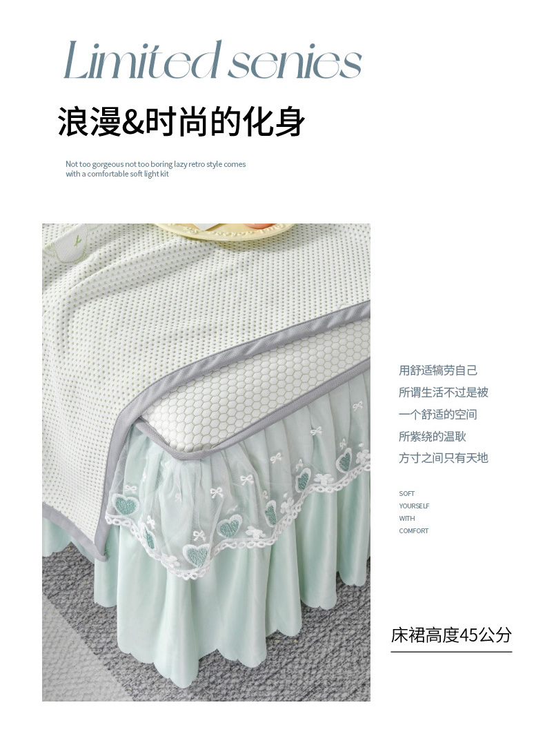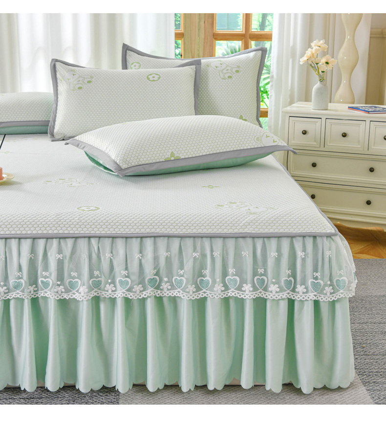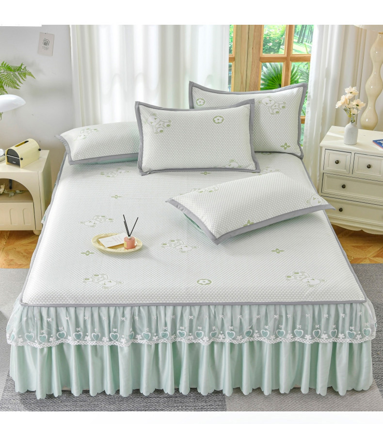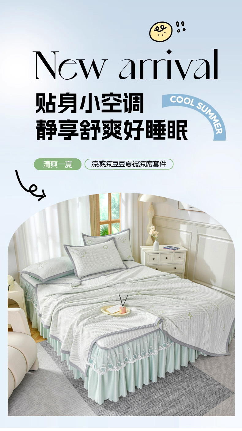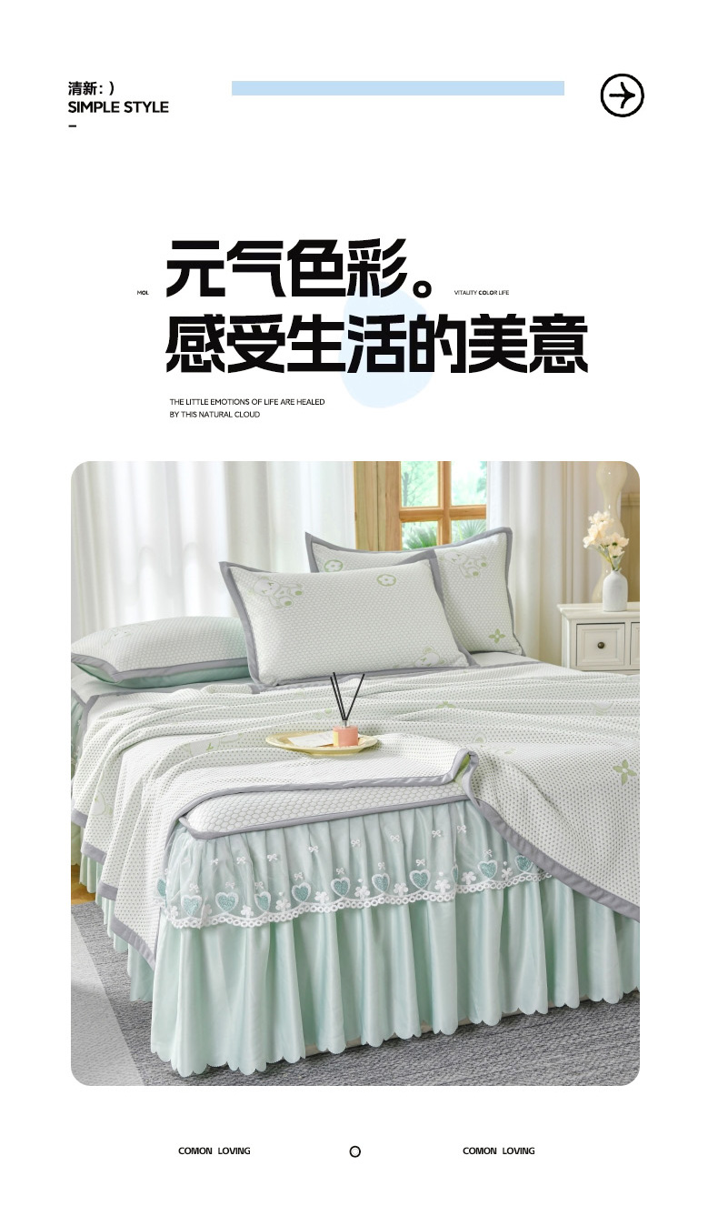当前位置: 91家纺网 > 商品网购 > 床上用品 > 凉席 > 其他凉席 > 品乐家纺 2025新款床裙款提花冰豆豆套件凉席席子 绿色