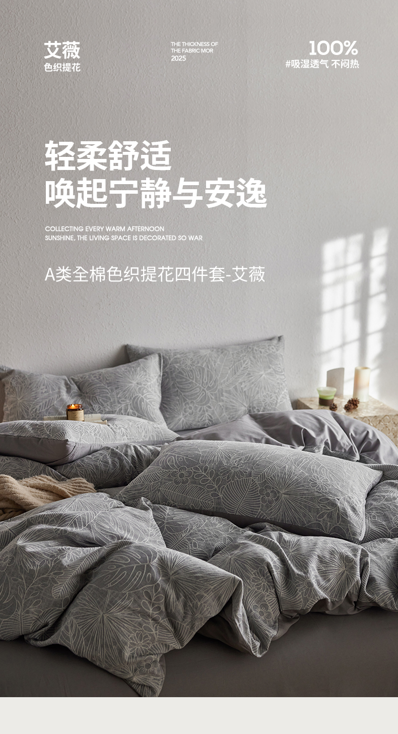 千朵森 2025新款全棉色织提花四季款四件套-艾薇 艾薇-晴蓝灰