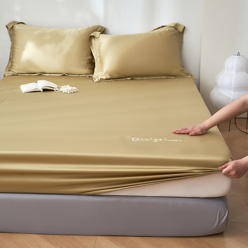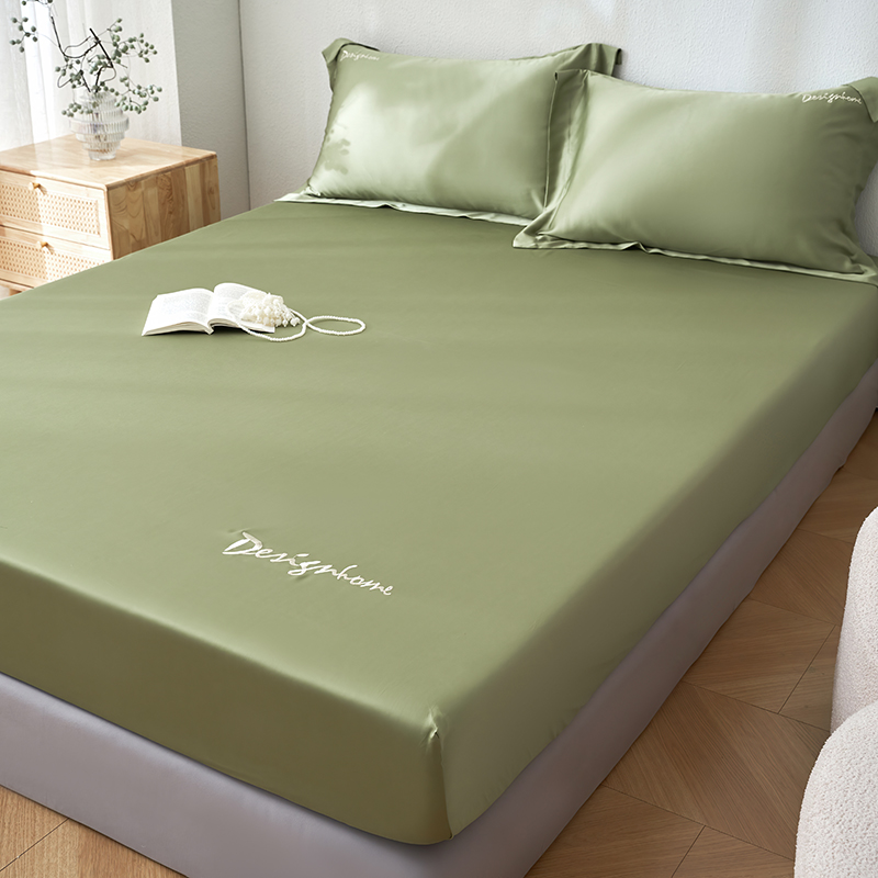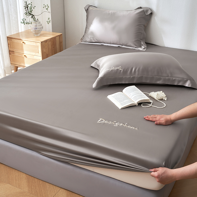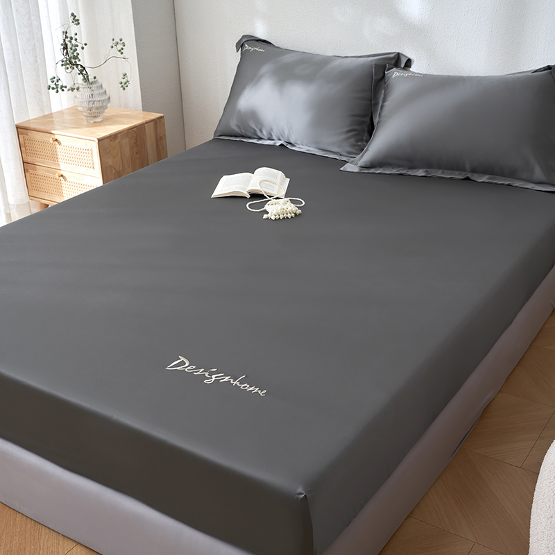 黛舒家居 2025新款60S兰精天丝纯色简绣单床笠 竹卡