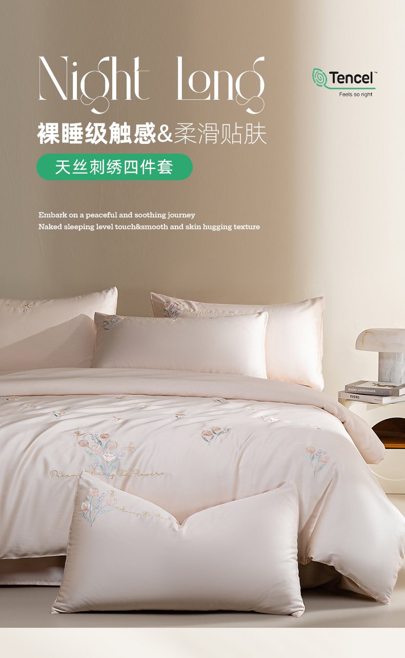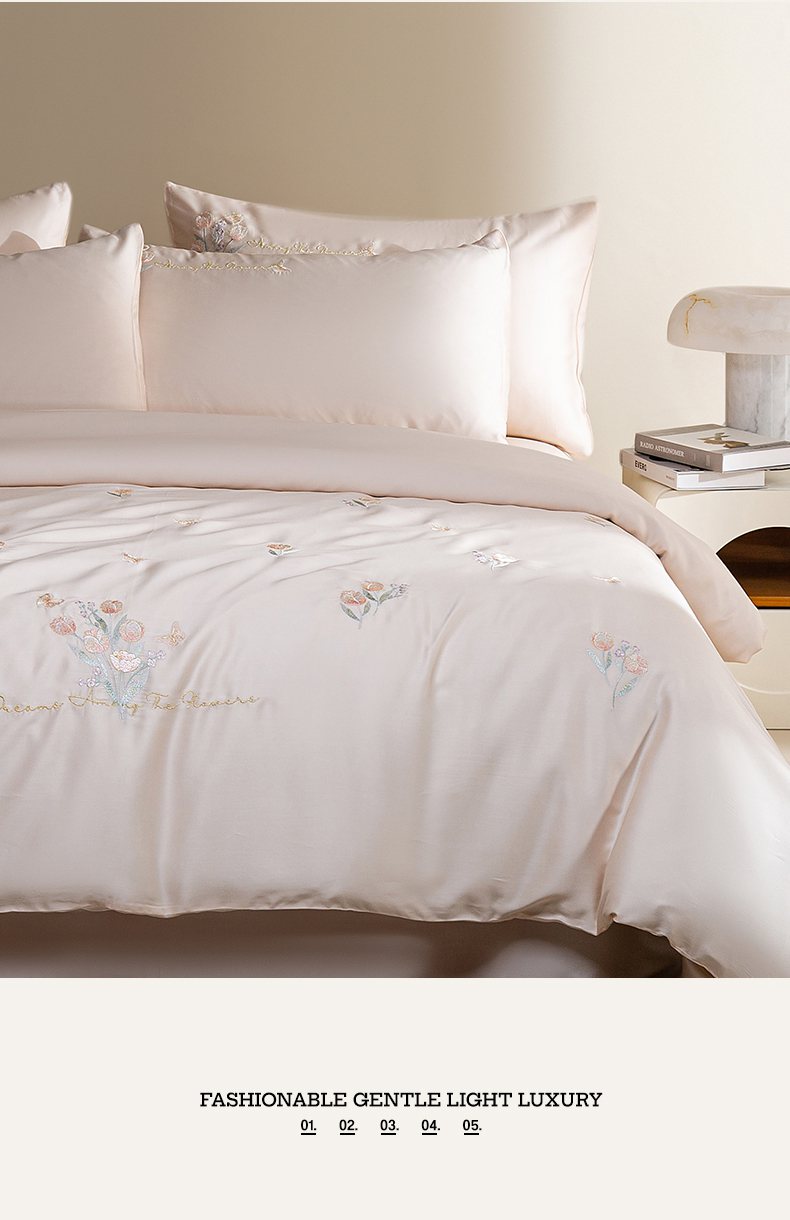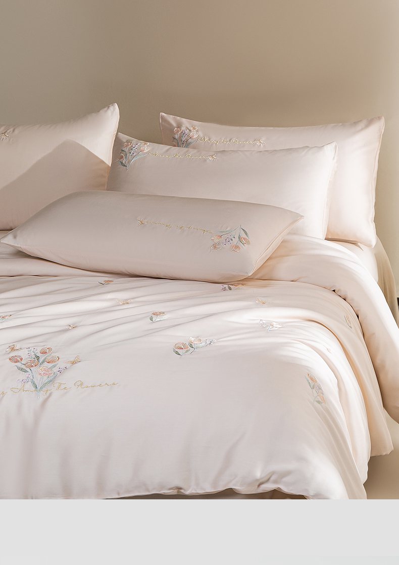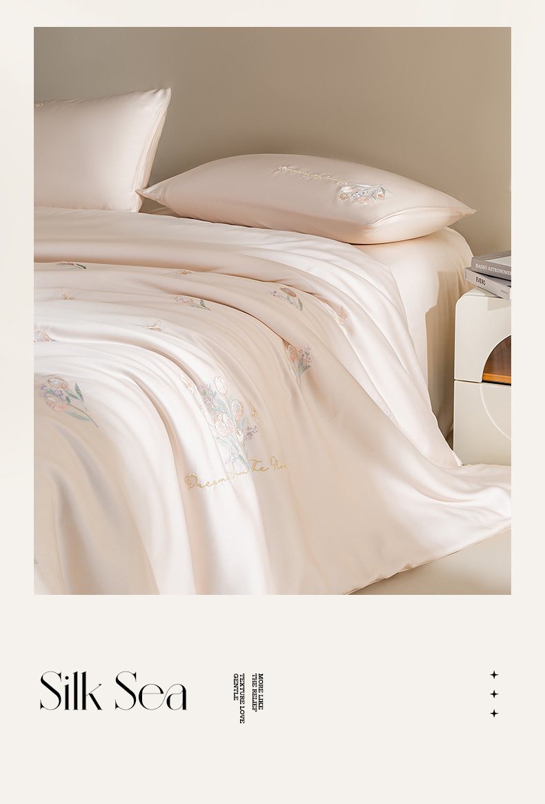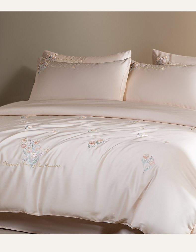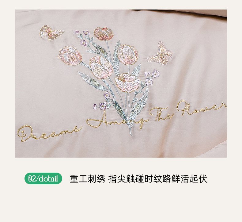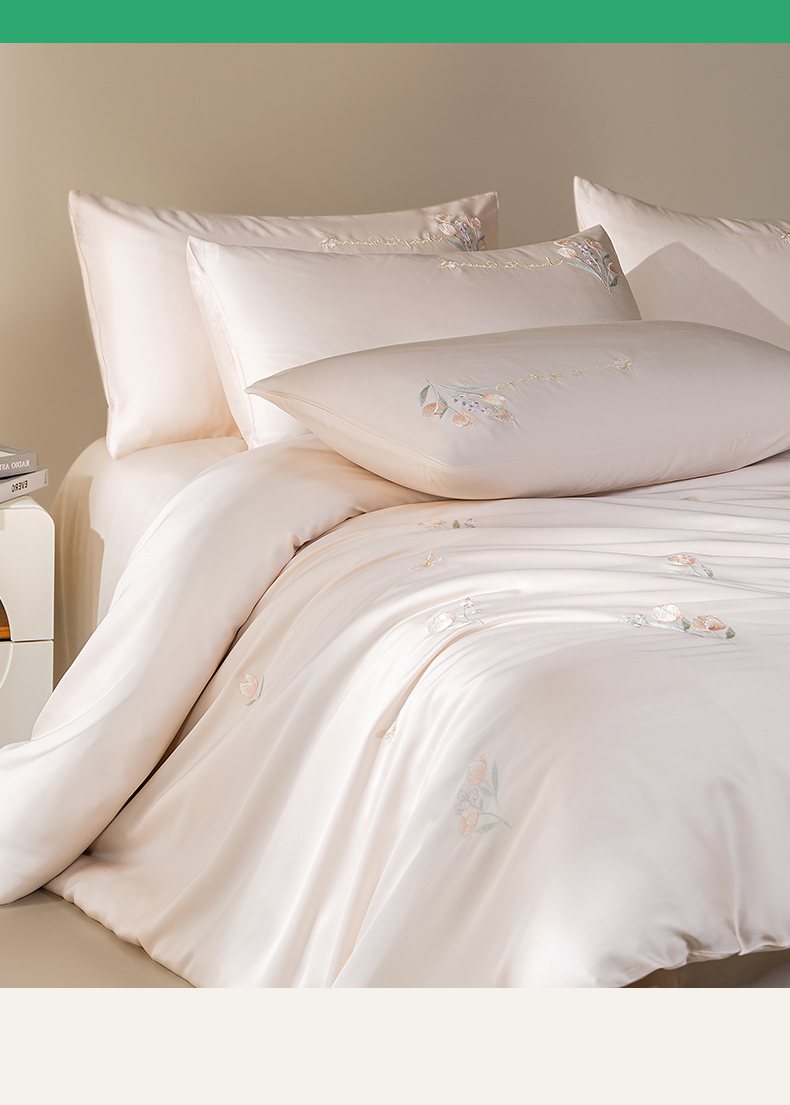 千朵森 2025新款60S奥地利兰精天丝四件套-春满郁金香 郁金香金