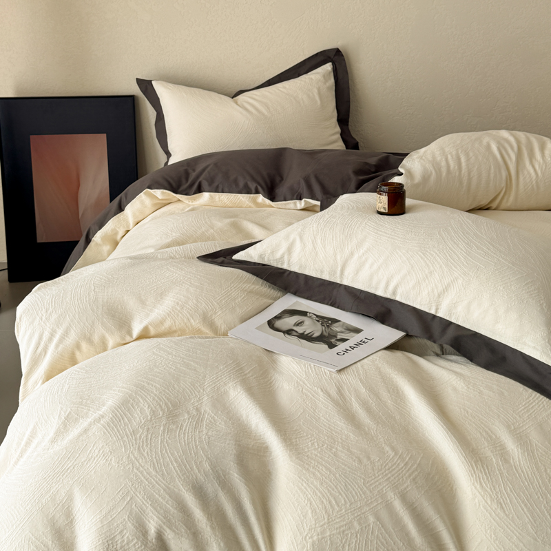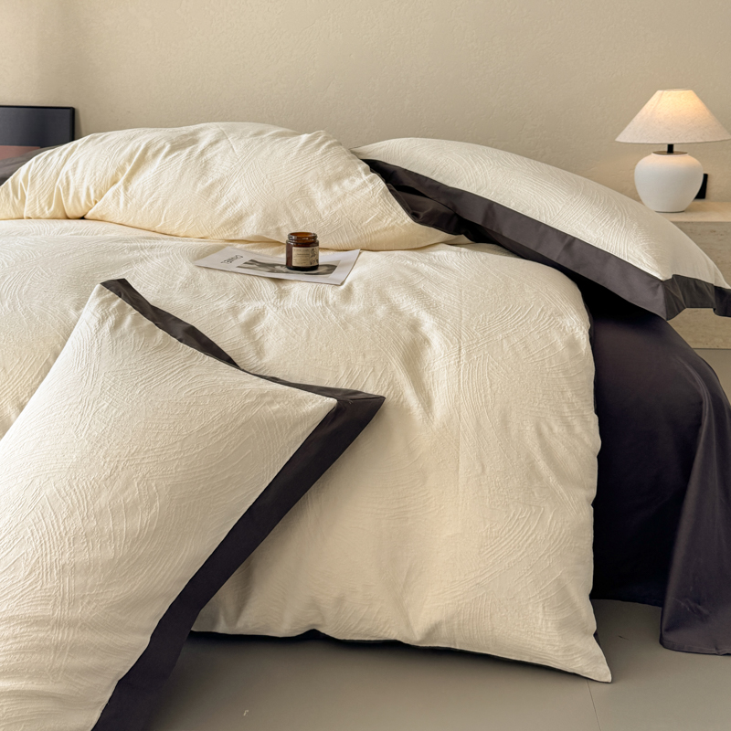 (总)若未家居2023新款轻奢意式50支全棉长绒棉四件套-水墨,贵族白,雾棕,烟蓝