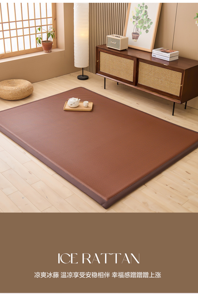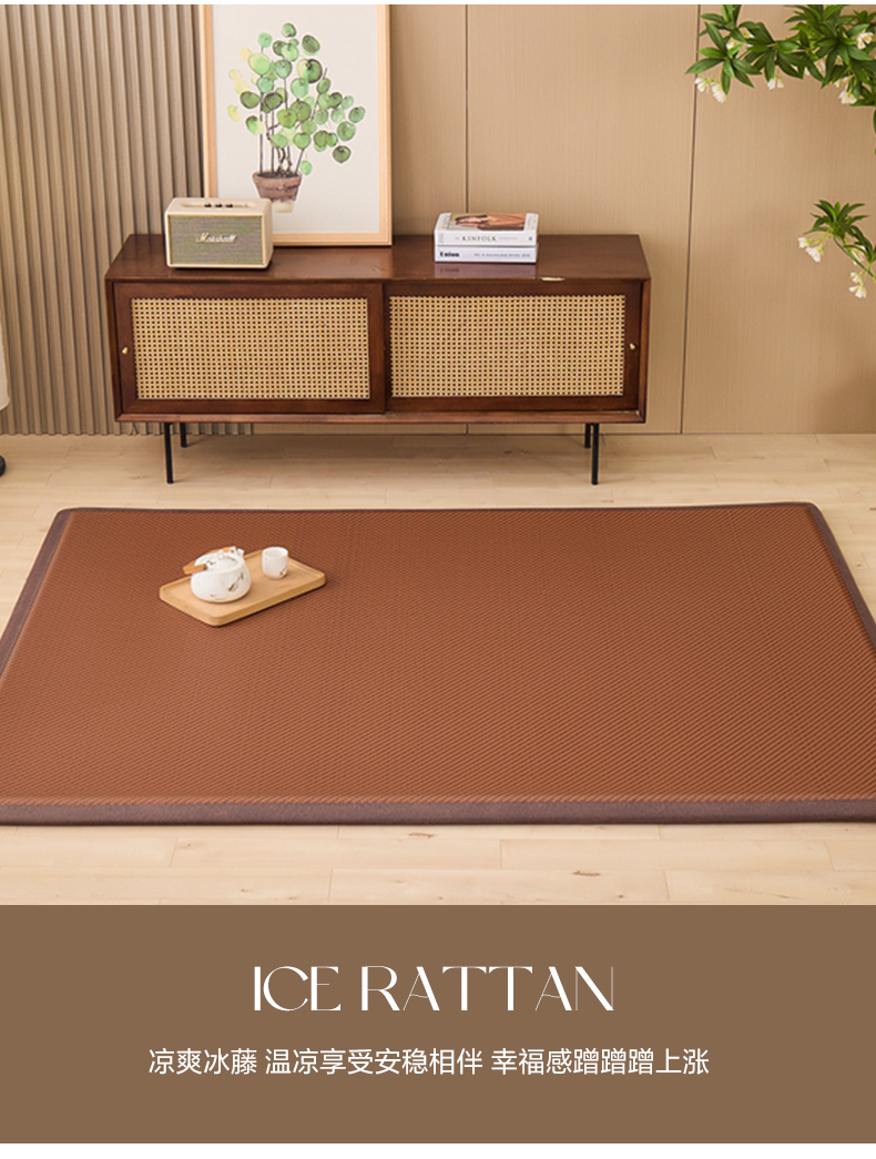 商品名称:绒艺席业 2025新款PE藤席地垫 斜纹编织 咖