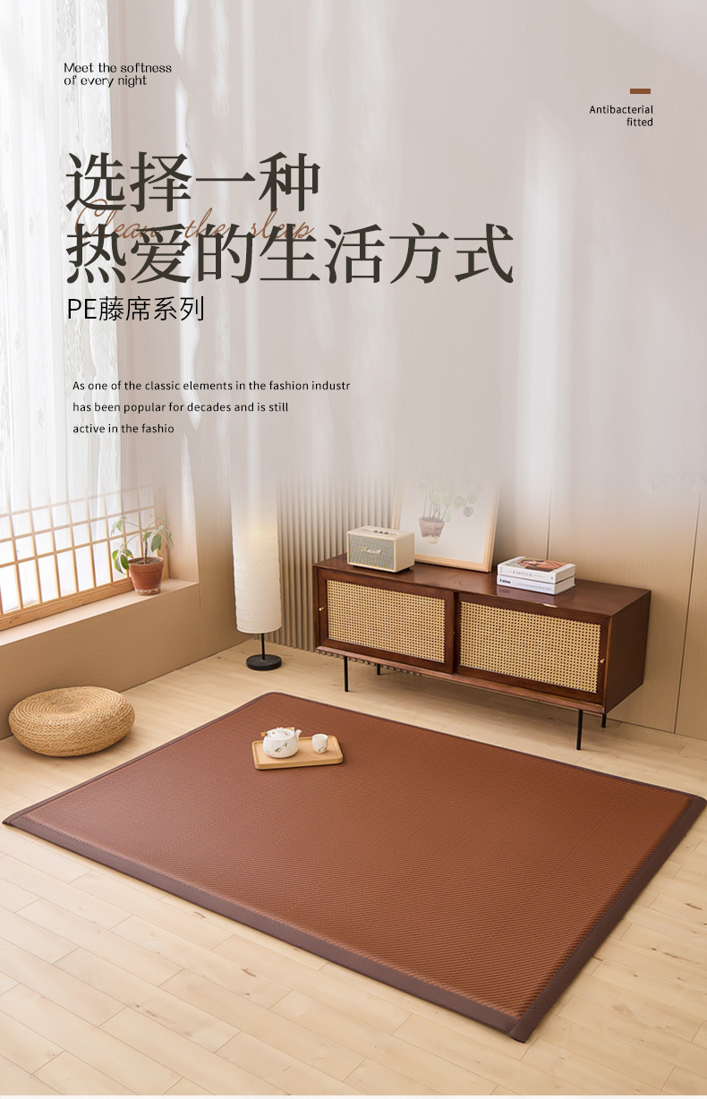 绒艺席业 2025新款PE藤席地垫 斜纹编织 咖