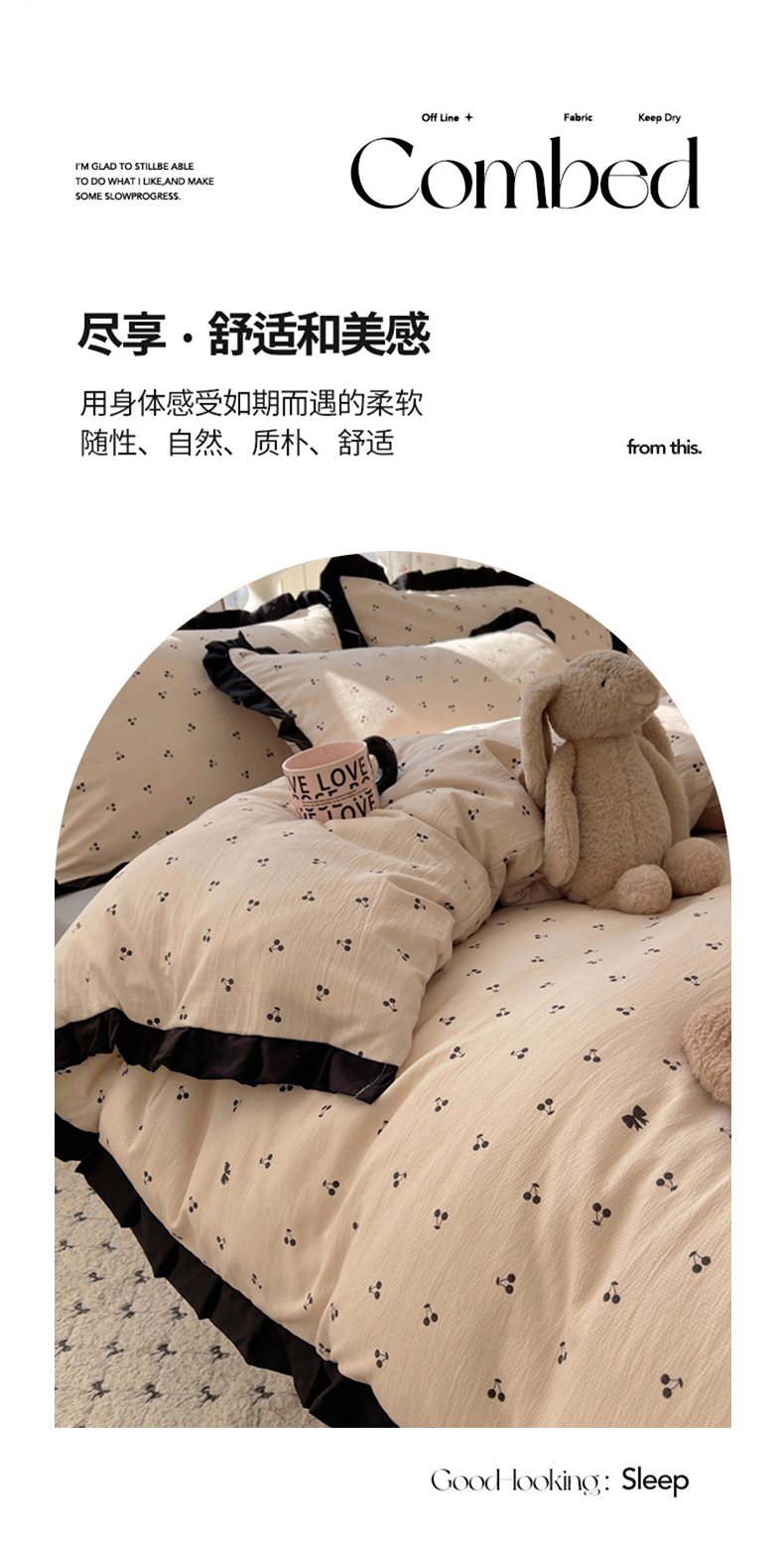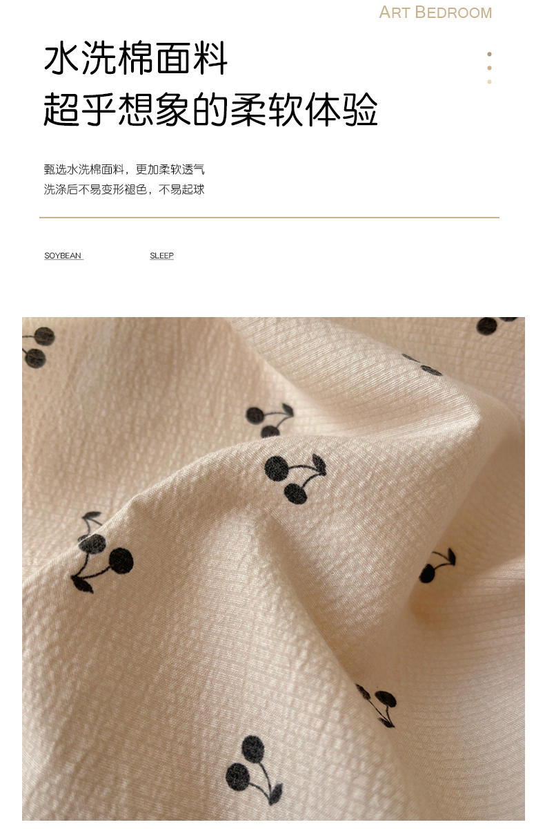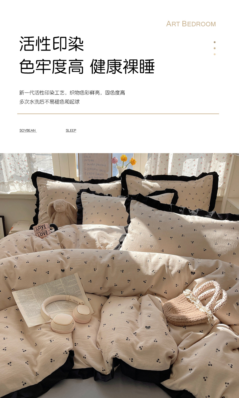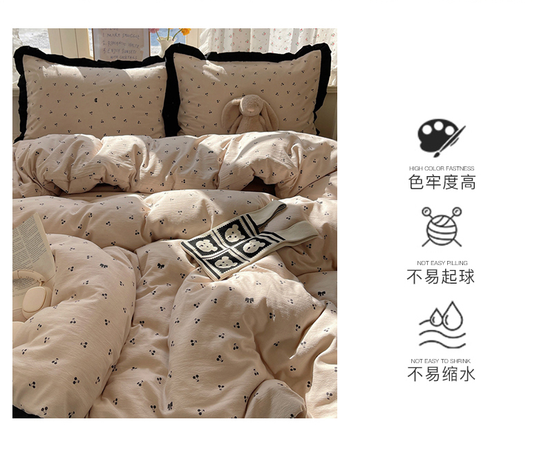 商品名称:红嘴企鹅 2025新款双层纱水洗棉赫本风四件套 赫本风-樱桃