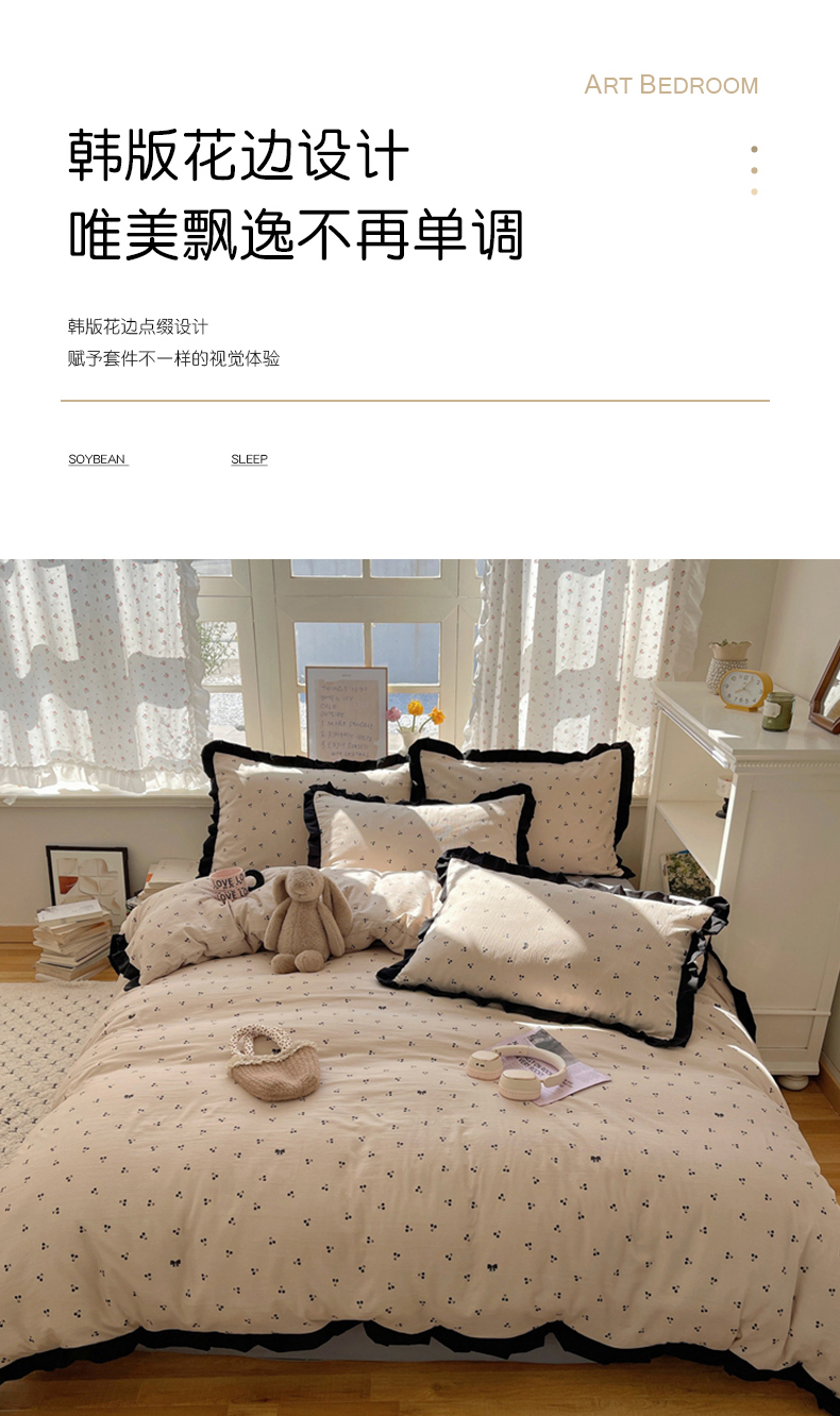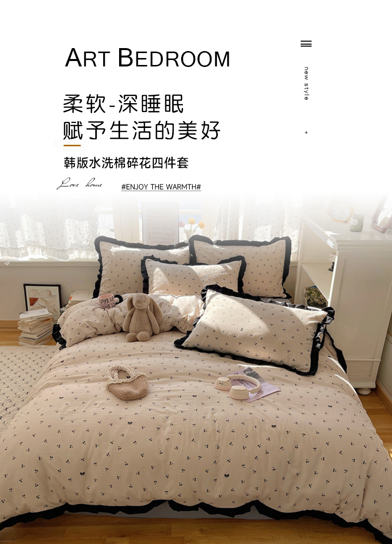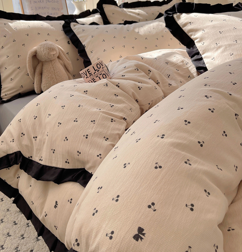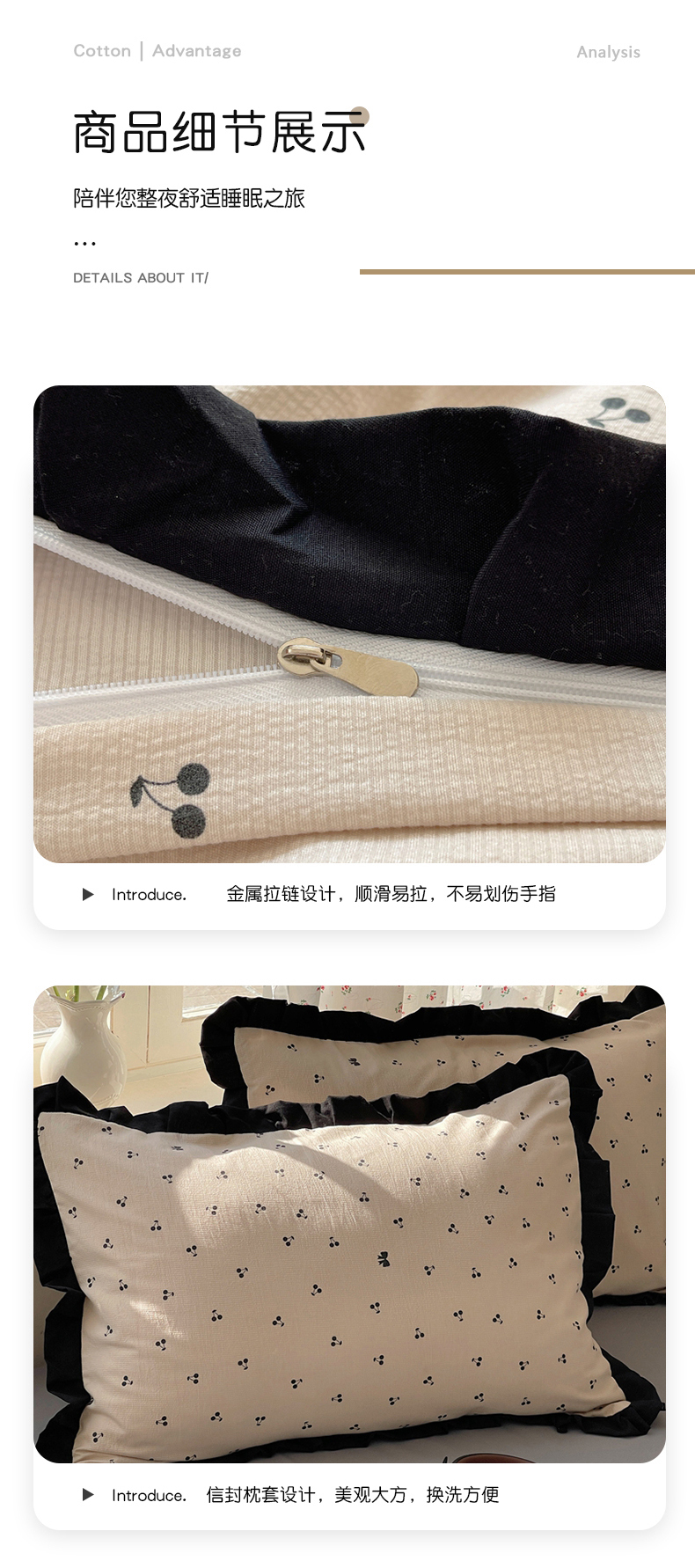 商品名称:红嘴企鹅 2025新款双层纱水洗棉赫本风四件套 赫本风-樱桃
