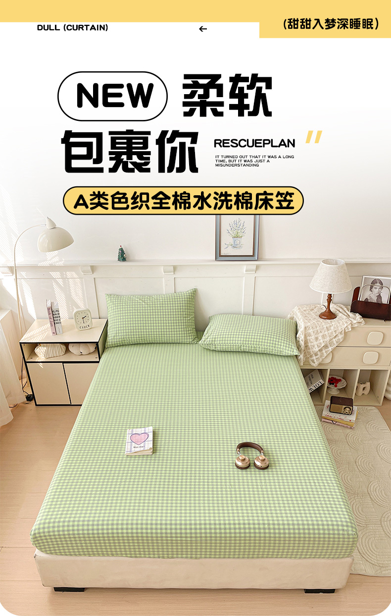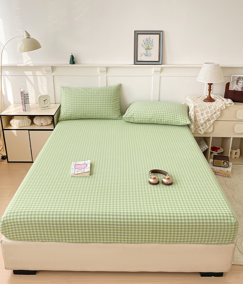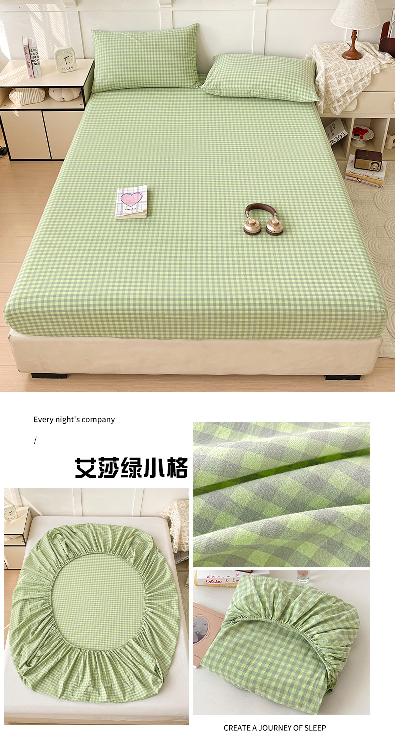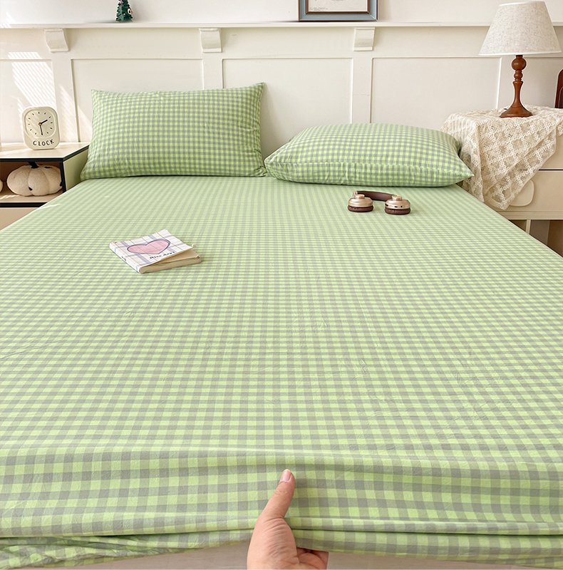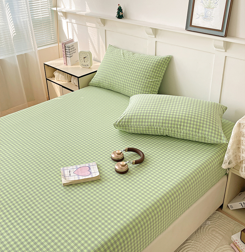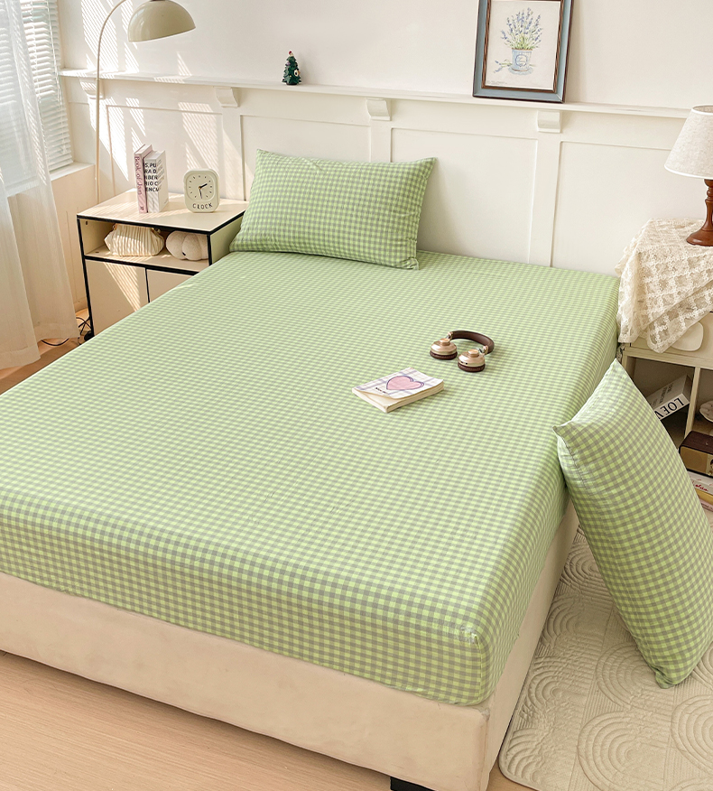 2025新款全棉水洗棉套件-单床笠 艾莎绿小格