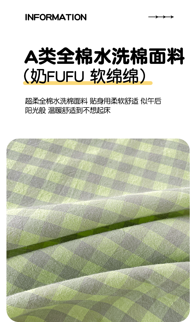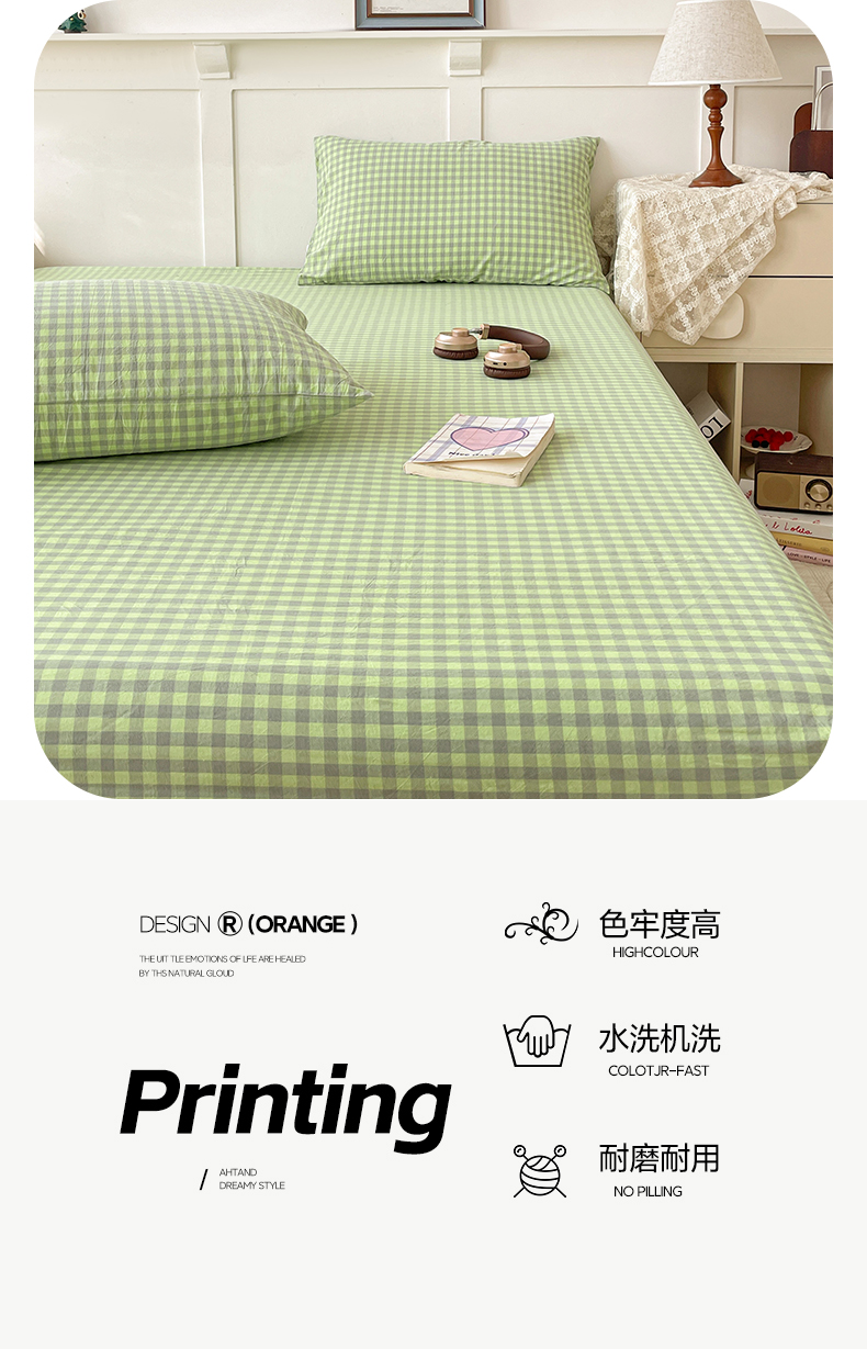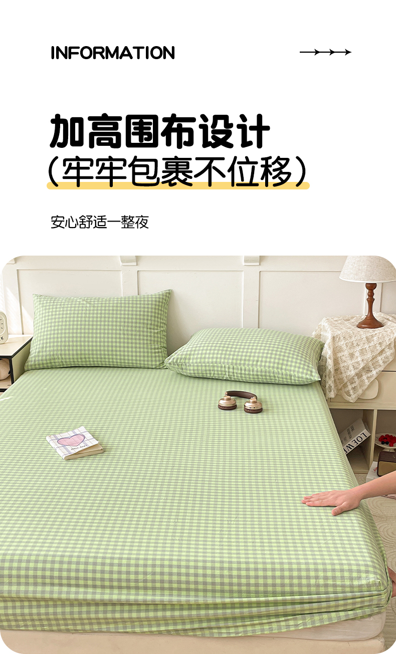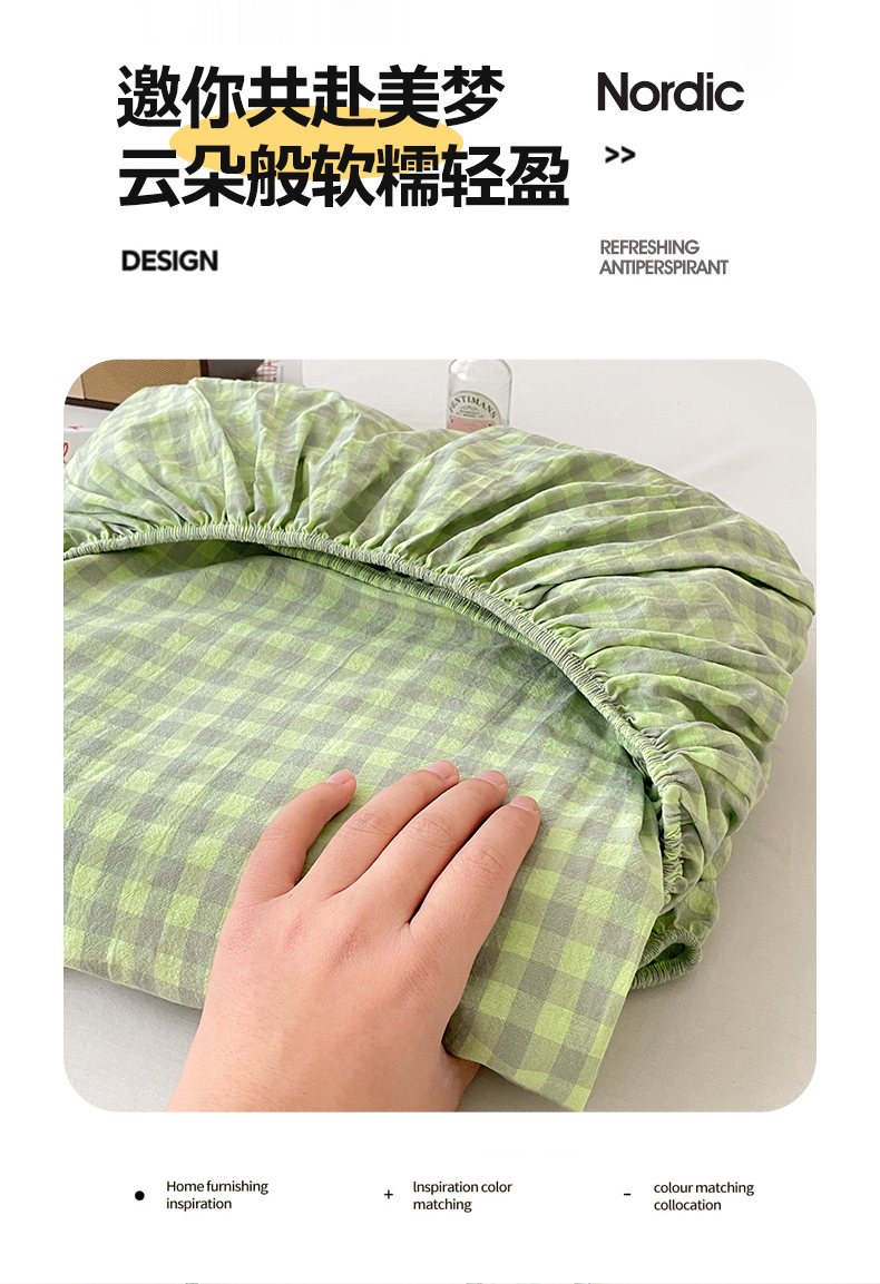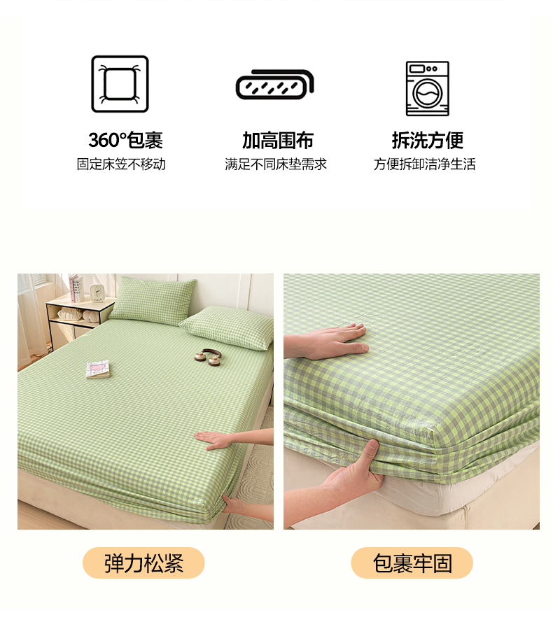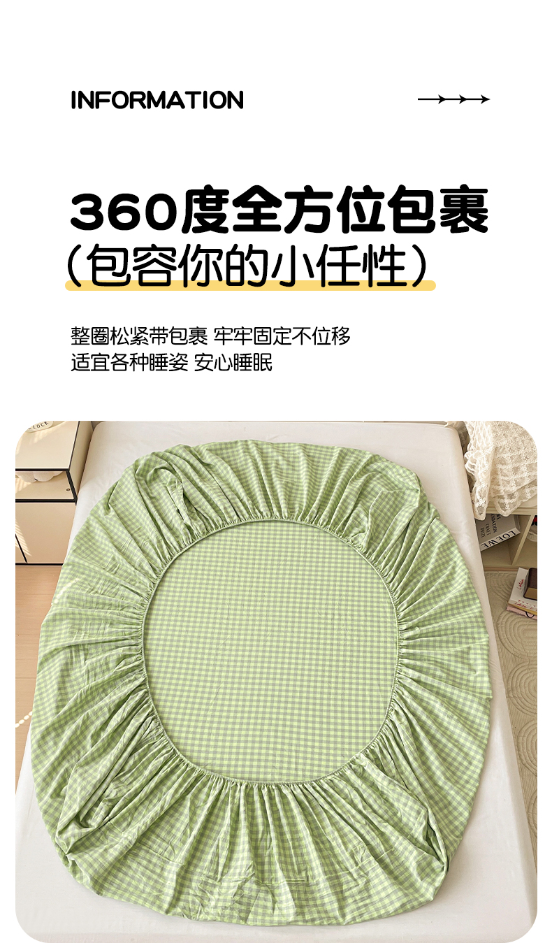 • 91家纺网 家纺一手货源 找家纺 2025新款全棉水洗棉套件-单床笠 艾莎绿小格