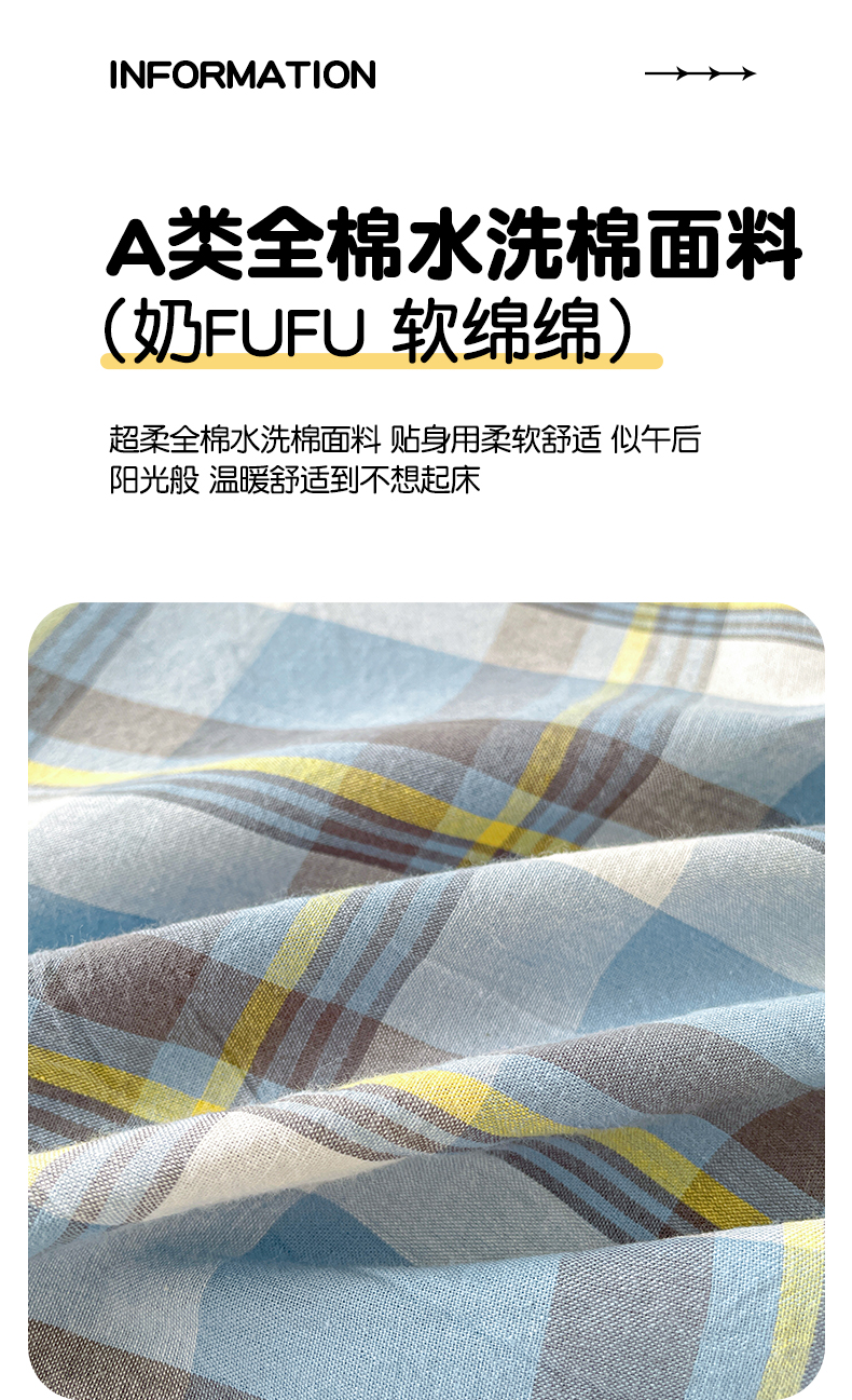 (总)大柏树 2025新款A类色织全棉水洗棉无印风四件套床单被套枕套,粉灰小格,黑白中格,黄粉三分格,灰细条,简兮兰,蓝大格,蓝黄三分格,蓝灰中格,蓝细条,流年灰,绿大格,绿灰小格,绿小格,米小格,牛油果大格,浅蓝小格,如意玉,森林桔,斯诺克,小冰激凌,英伦桔,英伦蓝,紫粉三分格,紫黄三分格