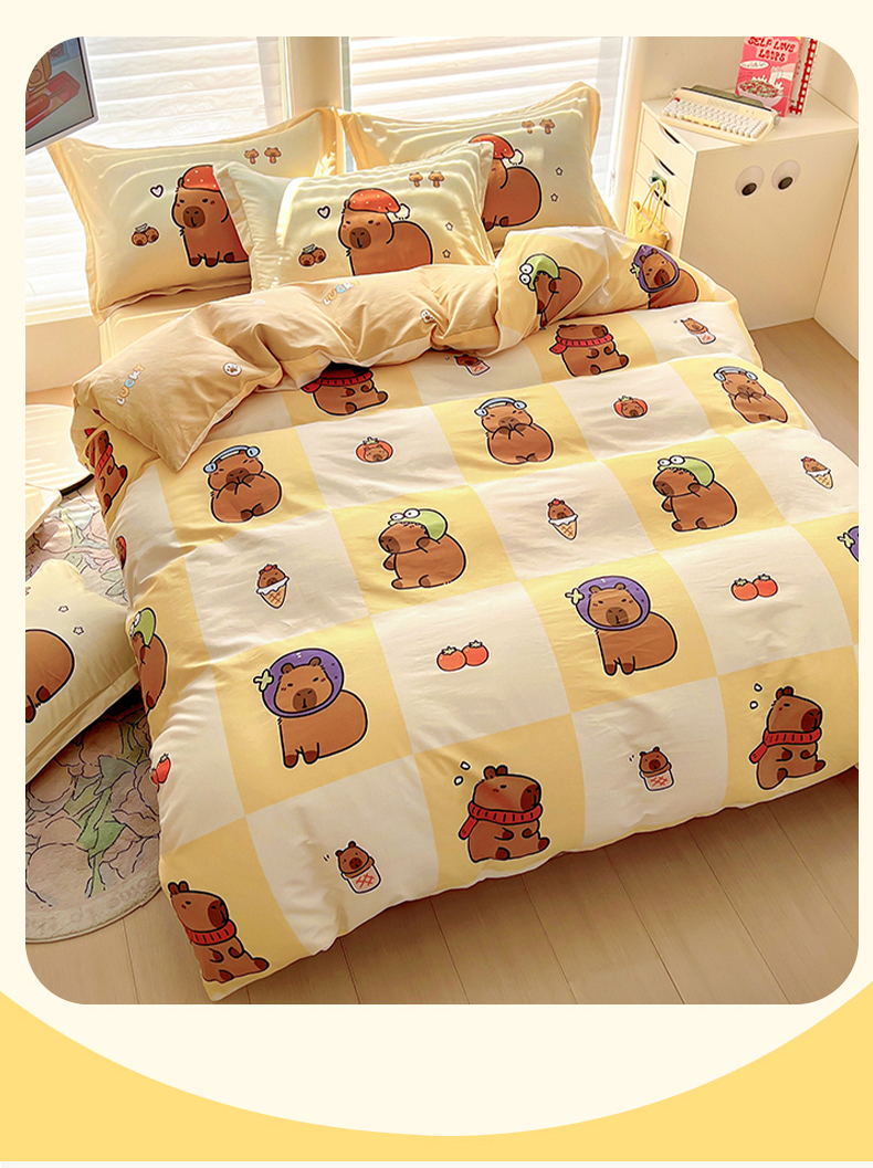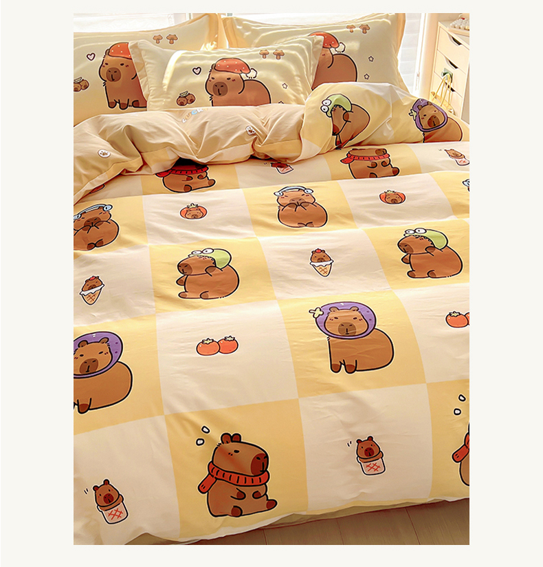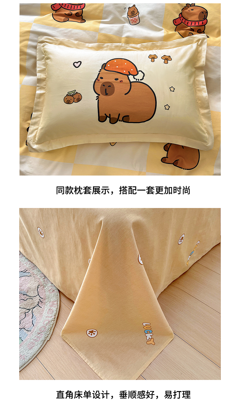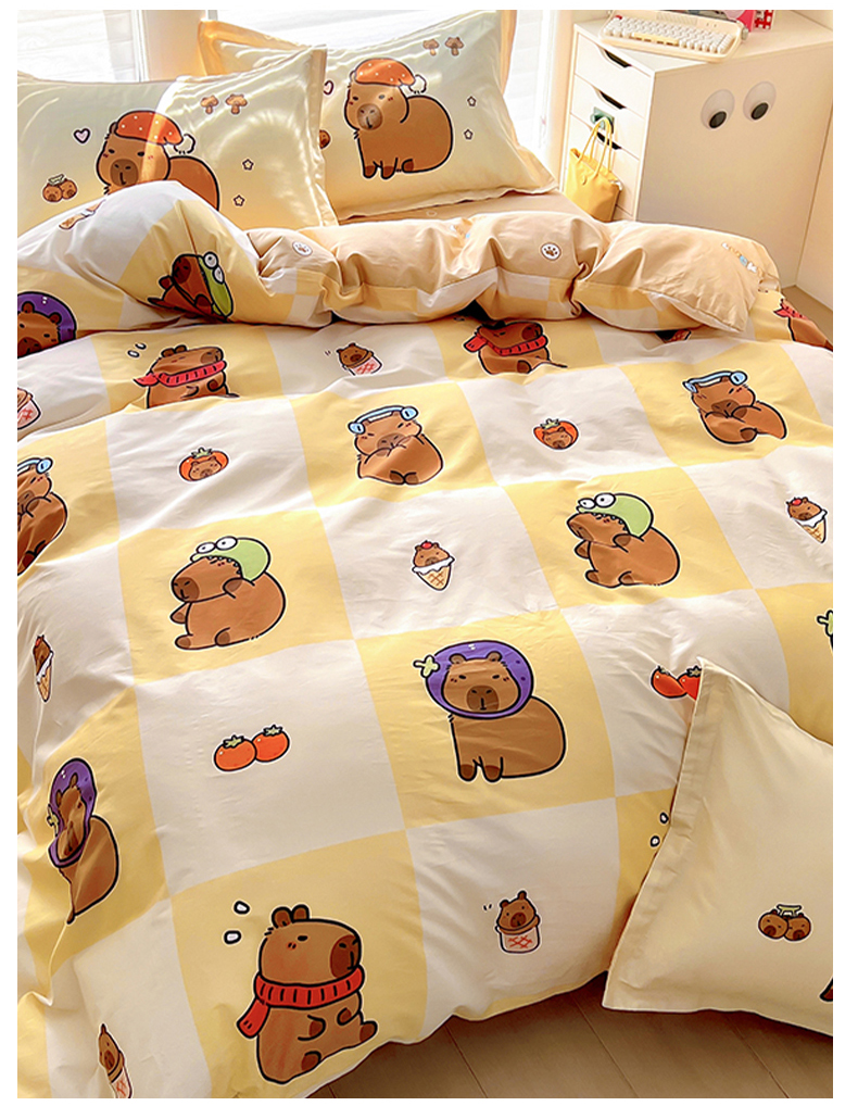 当前位置: 91家纺网 > 商品网购 > 床品套件 > 四件套 > 全棉普通四件套 > 2025新款原创设计卡皮巴拉全棉四件套-有作品登记证书 方格巴拉