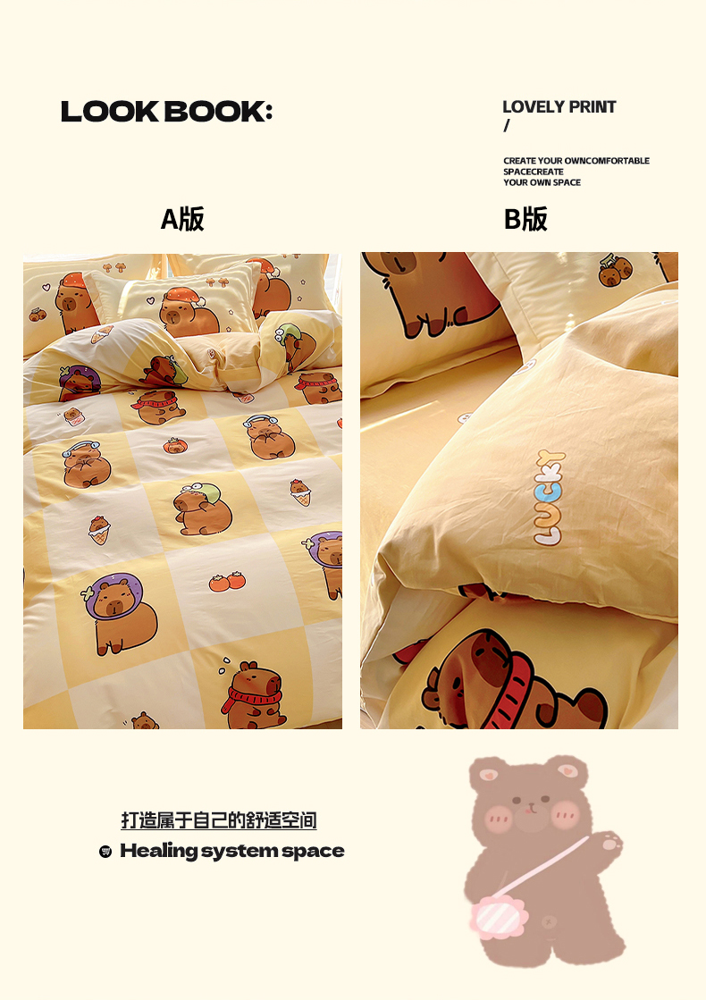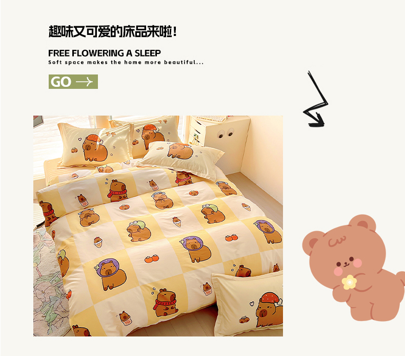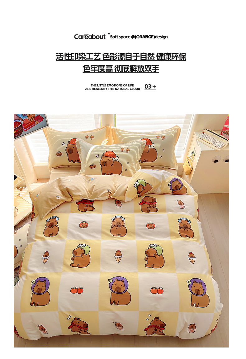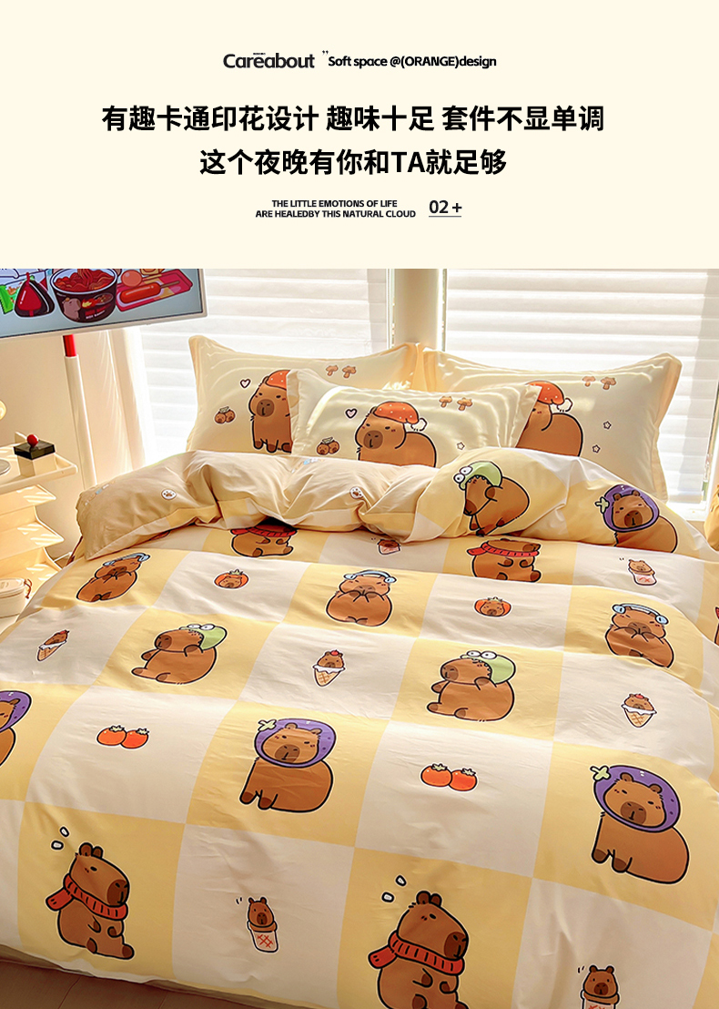 当前位置: 91家纺网 > 商品网购 > 床品套件 > 四件套 > 全棉普通四件套 > 2025新款原创设计卡皮巴拉全棉四件套-有作品登记证书 方格巴拉